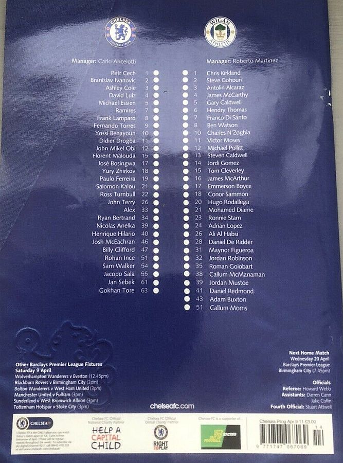 Terry 9, Ramires 45, Lampard 58, Ivanovic 60 |