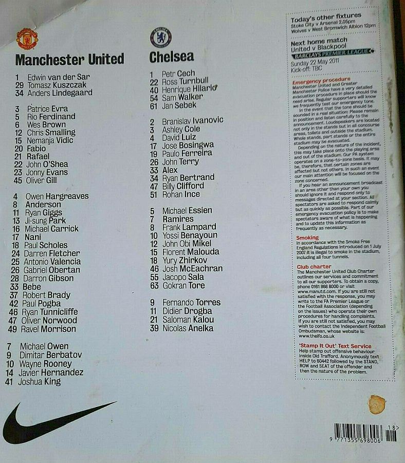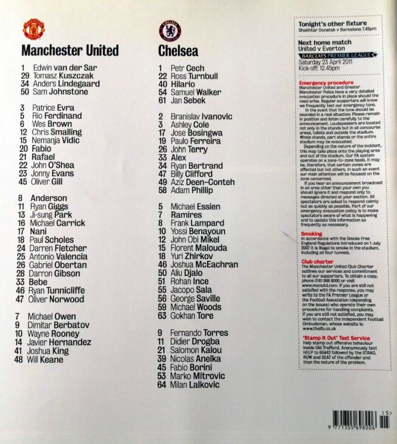 Antonio Valencia 41, Javier Hernandez 75, Dimitar Berbatov 90 |