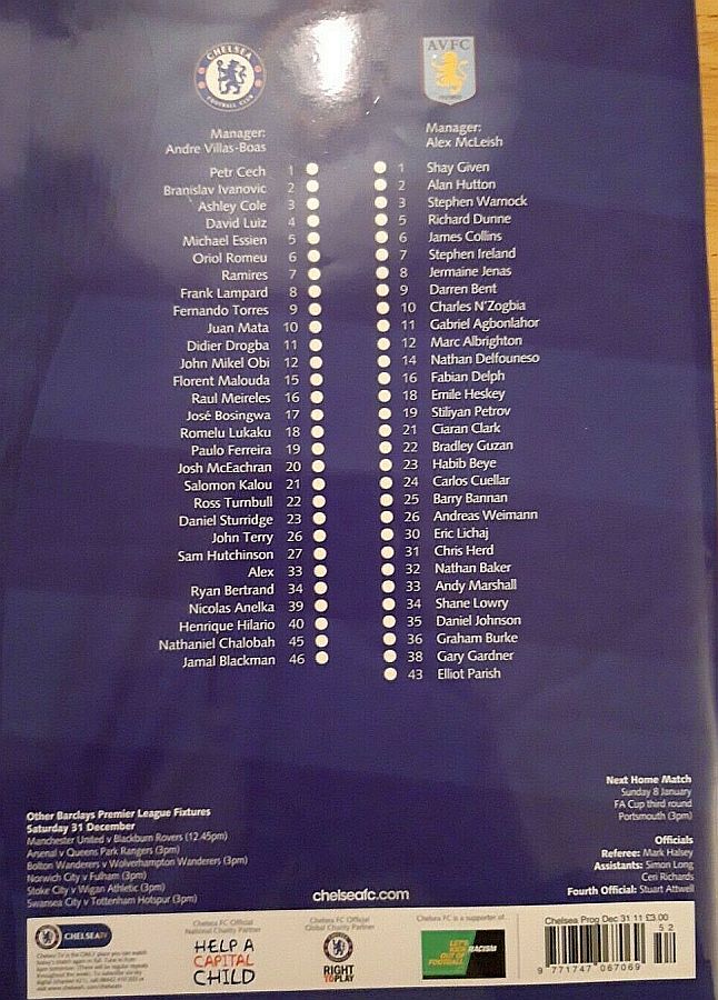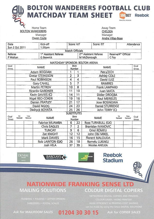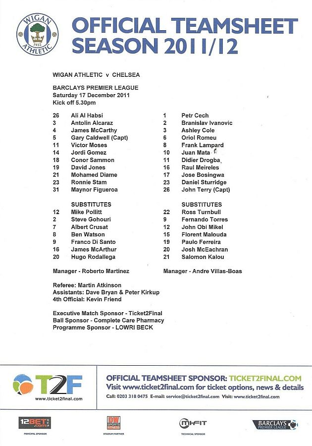 Bosingwa 6, Lampard 82 (Pen), Mata 90 |