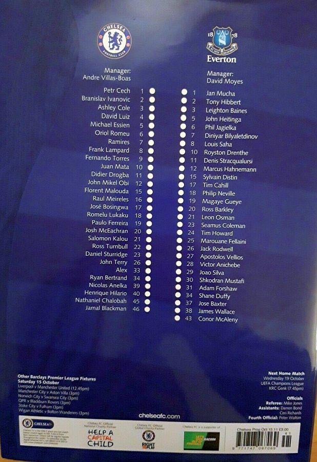 40 Henrique Hilario, 19 Paulo Ferreira, 20 Josh McEachran, 21 Salomon Kalou |