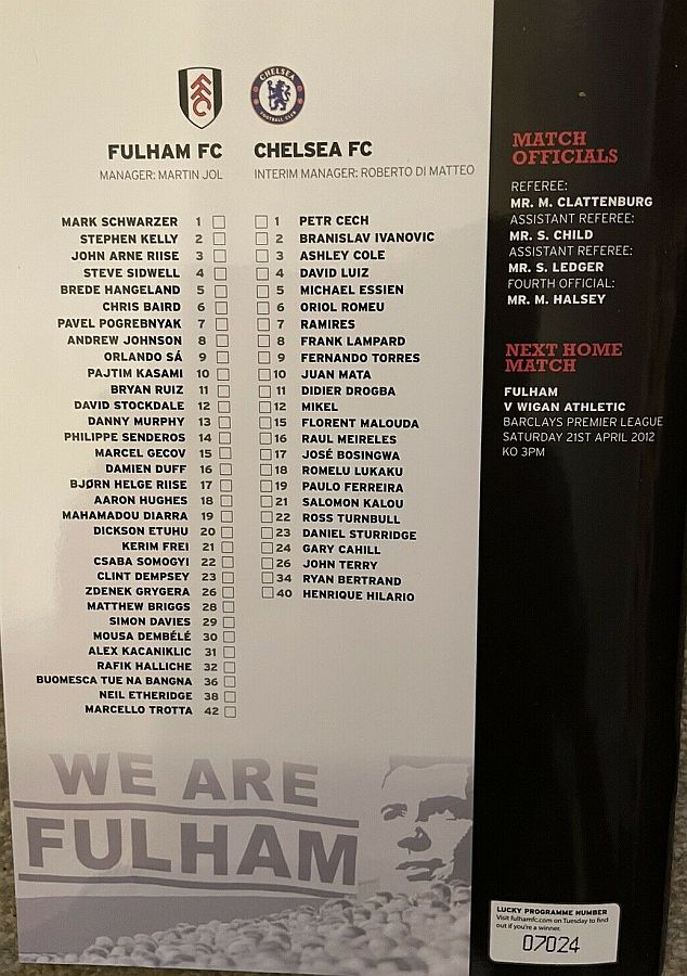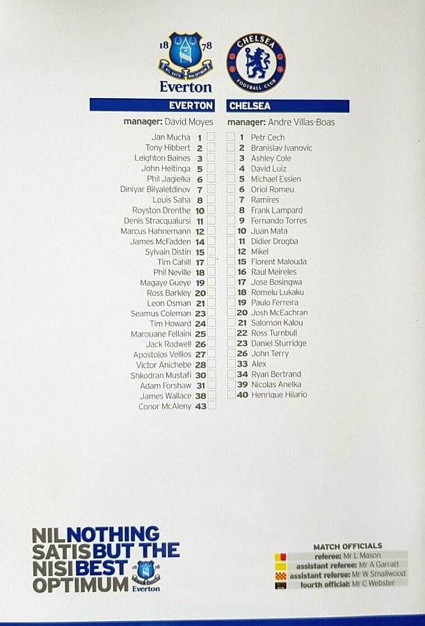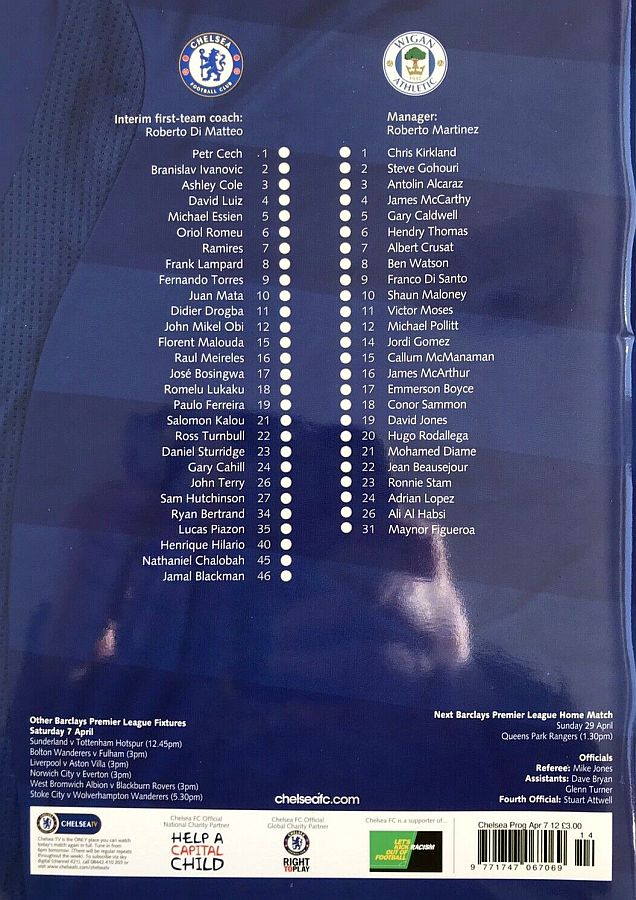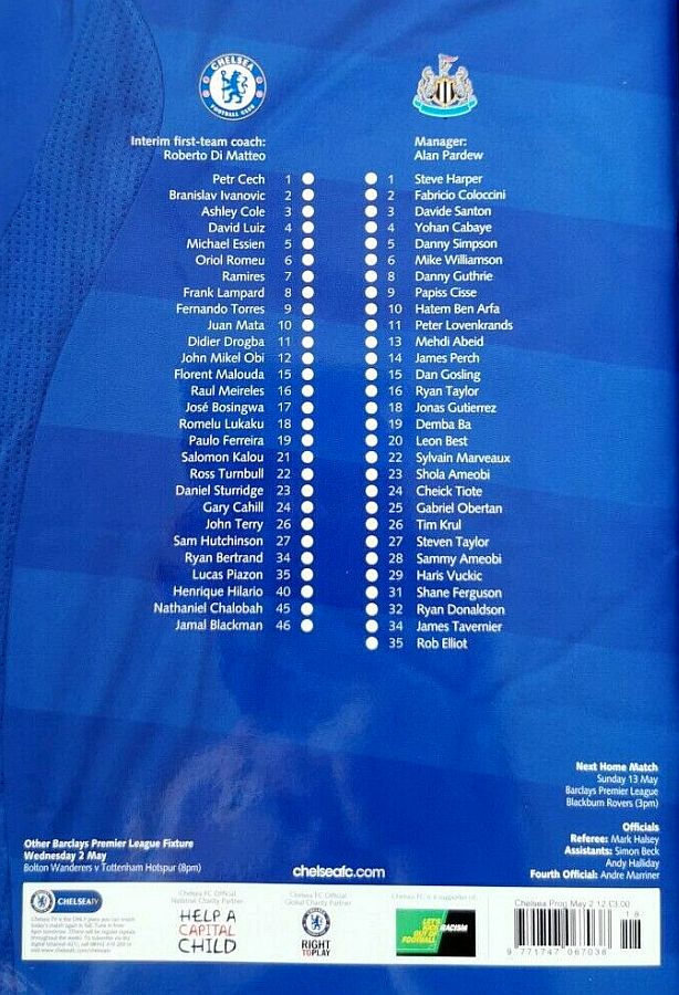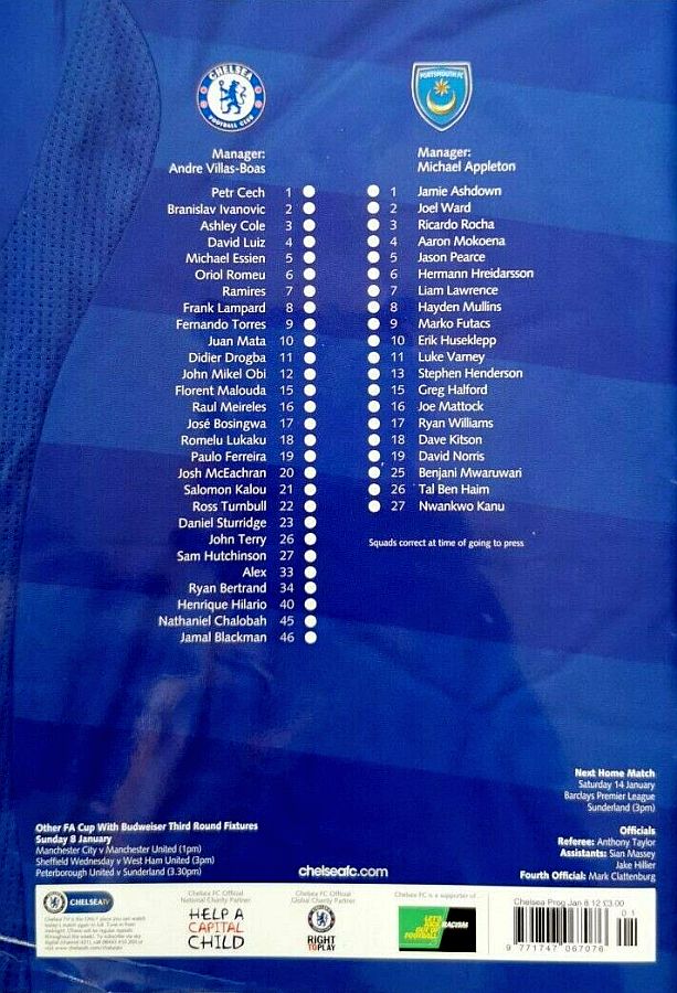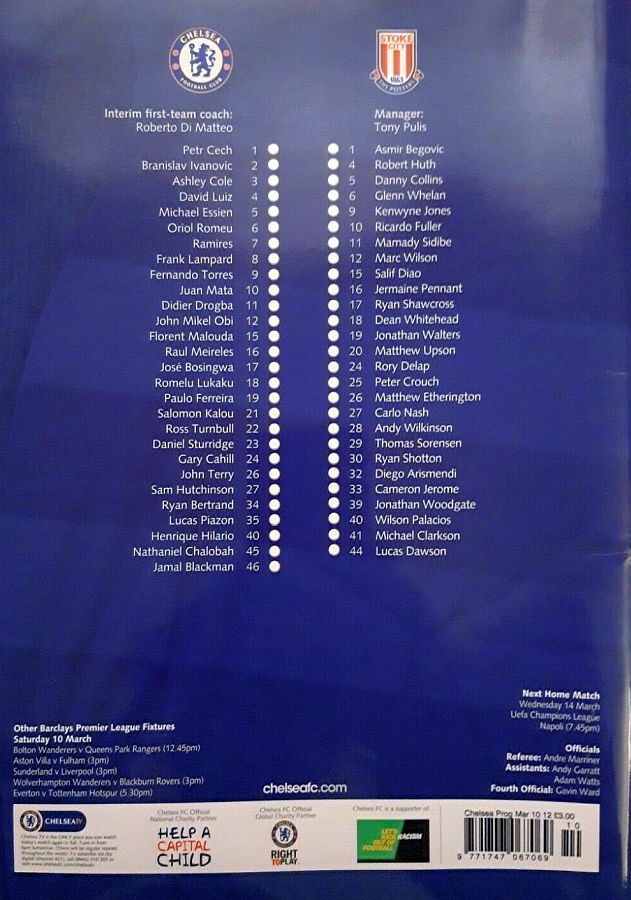 40 Henrique Hilario, 3 Ashley Cole, 8 Frank Lampard, 10 Juan Mata, 21 Salomon Kalou, 27 Sam Hutchinson |
