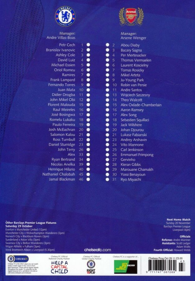 40 Henrique Hilario, 4 David Luiz, 21 Salomon Kalou, 20 Josh McEachran |