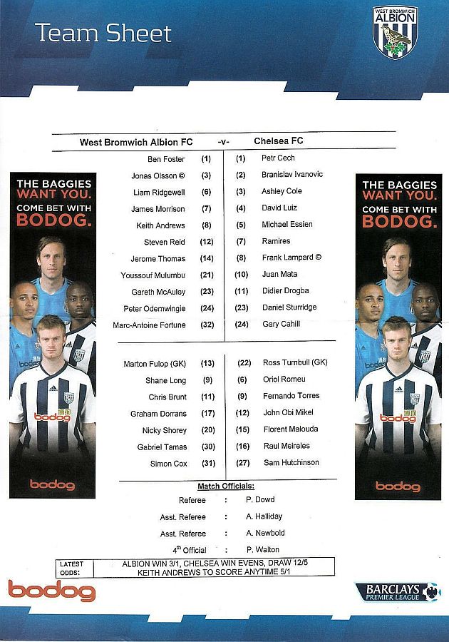 Ben Foster, Steven Reid, Gabriel Tamas, Jonas Olsson, Nicky Shorey, Paul Scharner, Youssef Mulumbu (Graeme Dorrans 87), Chris Brunt, James Morrison, Shane Long, Somen Tchoyi (Peter Odemwingie 75) |