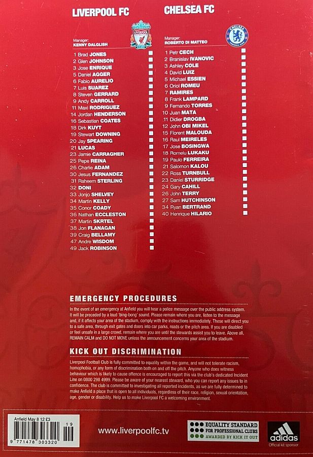 Pepe Reina, Glen Johnson, Jamie Carragher, Martin Skrtel, Daniel Agger, Stewart Downing (Raheem Sterling 84), Jordan Henderson, Jonjo Shelvey, Maxi Rodriguez (Dirk Kuyt 84), Luis Suarez, Andy Carroll |