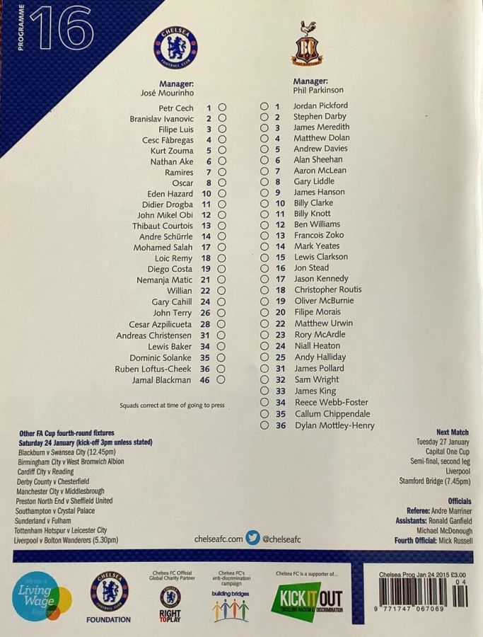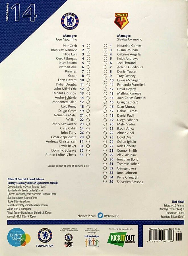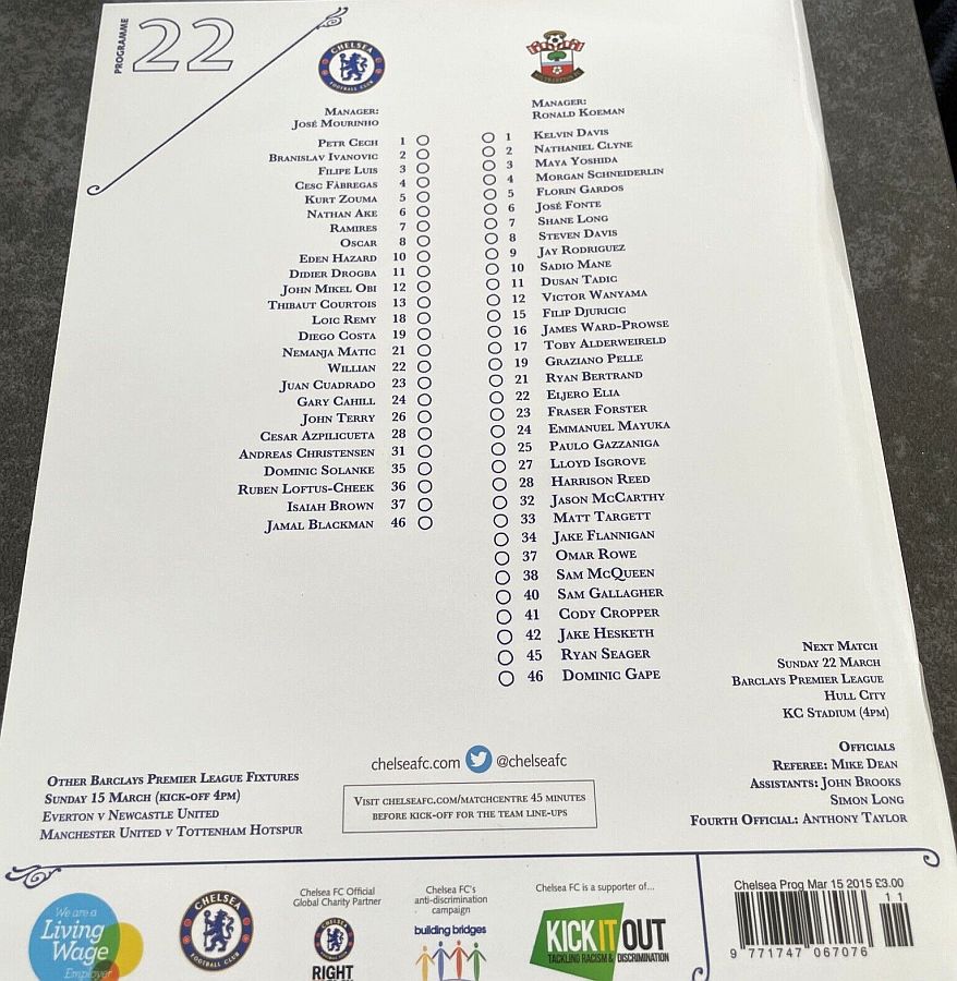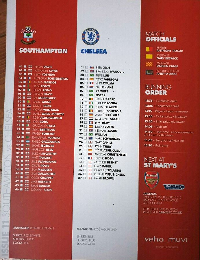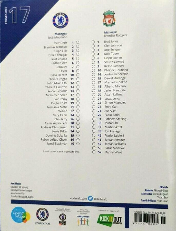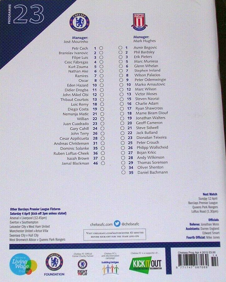 1 Petr Cech, 3 Filipe Luis, 23 Juan Cuadrado, 35 Dominic Solanke |