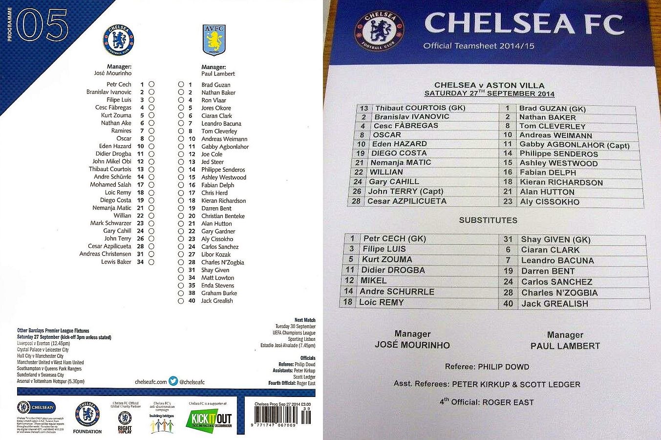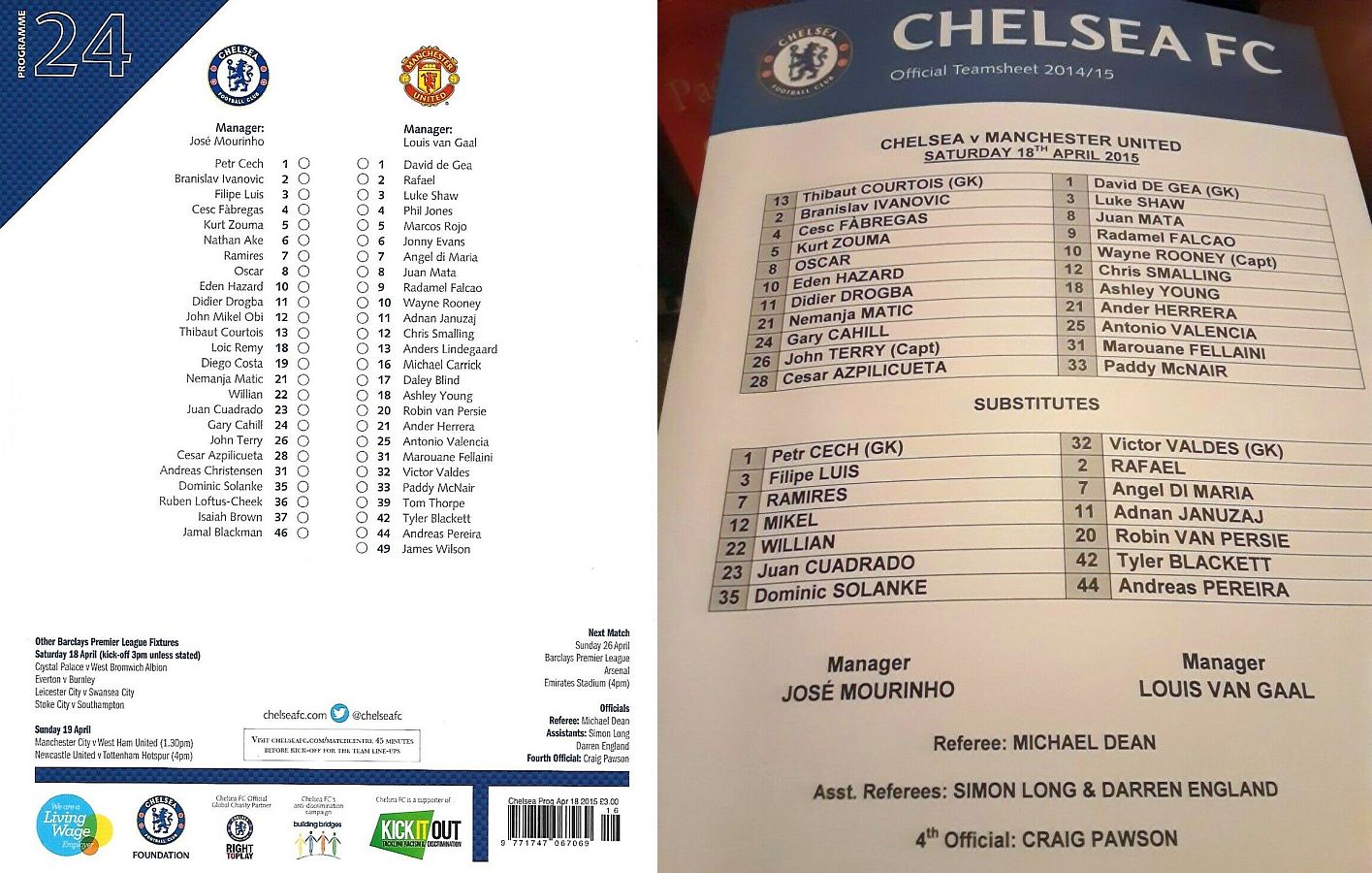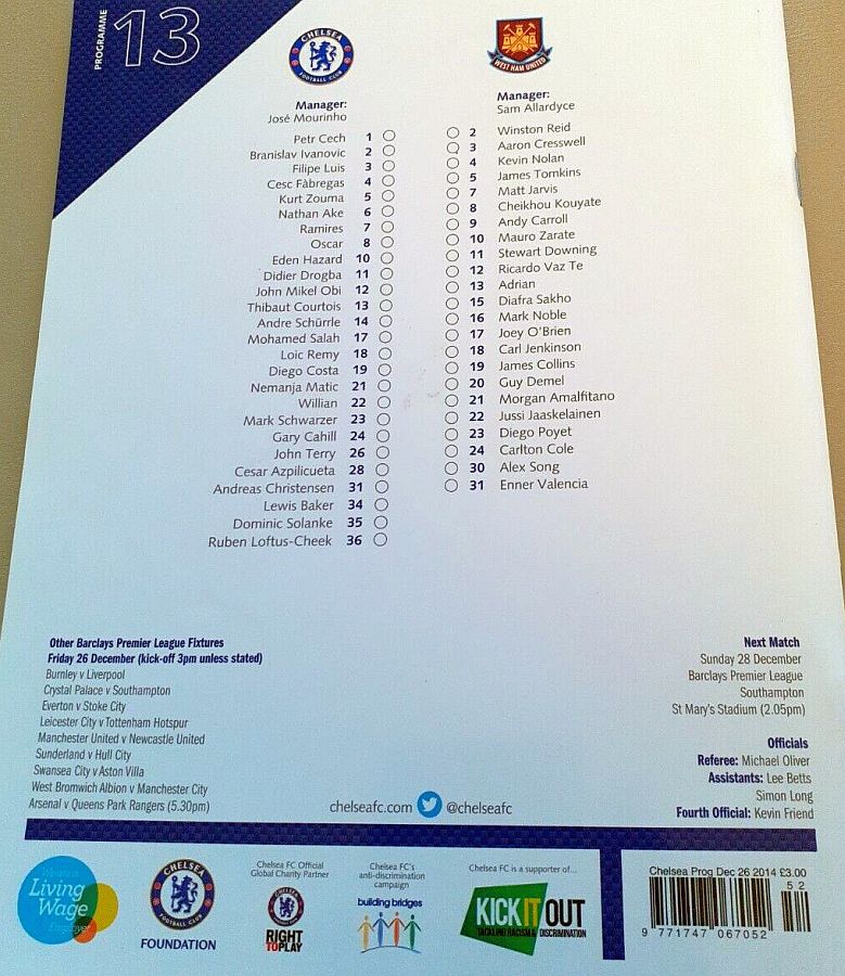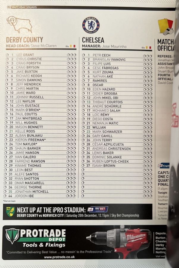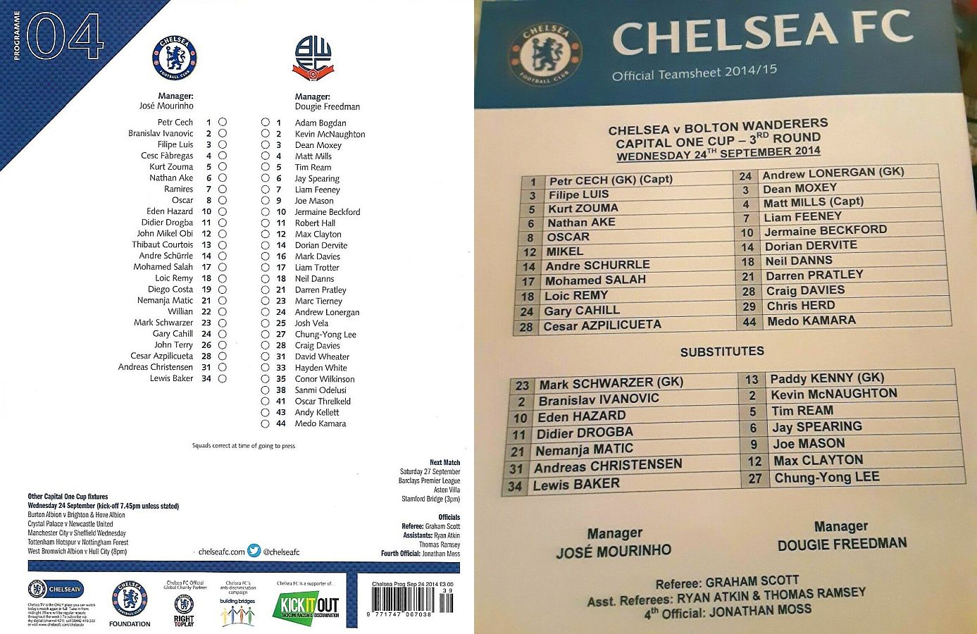 1 Petr Cech, 3 Filipe Luis, 23 Juan Cuadrado, 35 Dominic Solanke |