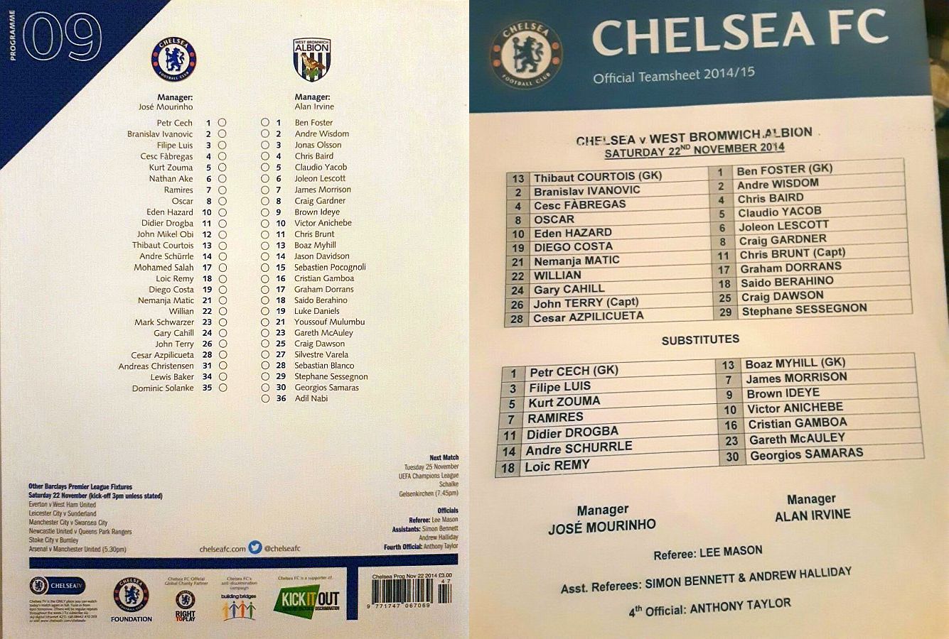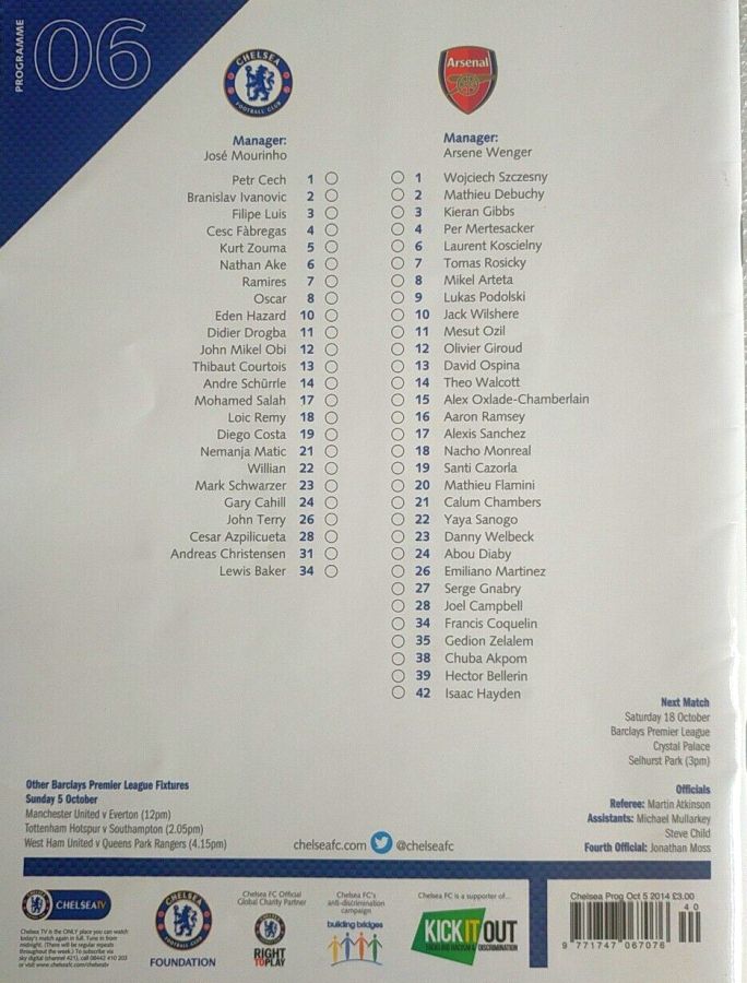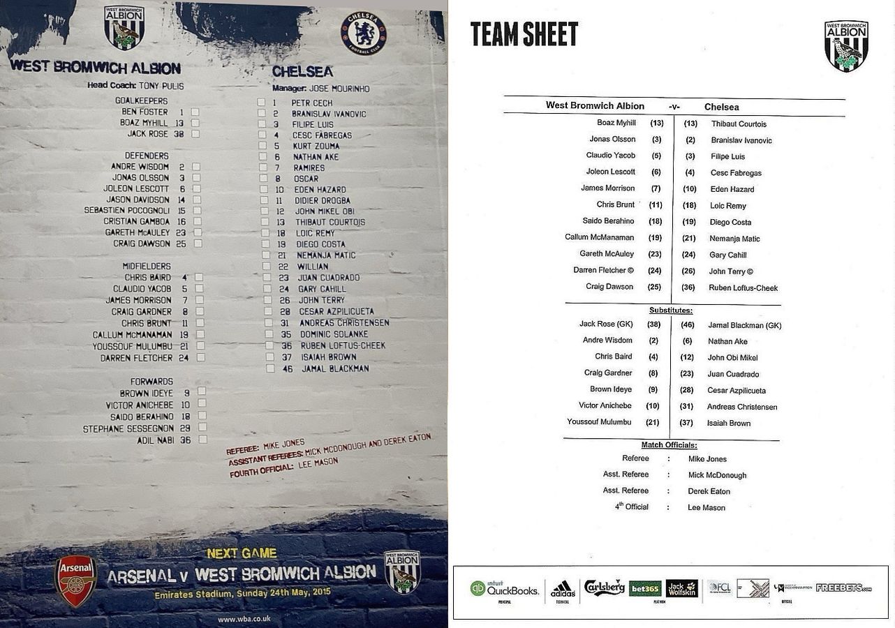 1 Petr Cech, 3 Filipe Luis, 12 Mikel Obi, 37 Isaiah Brown |