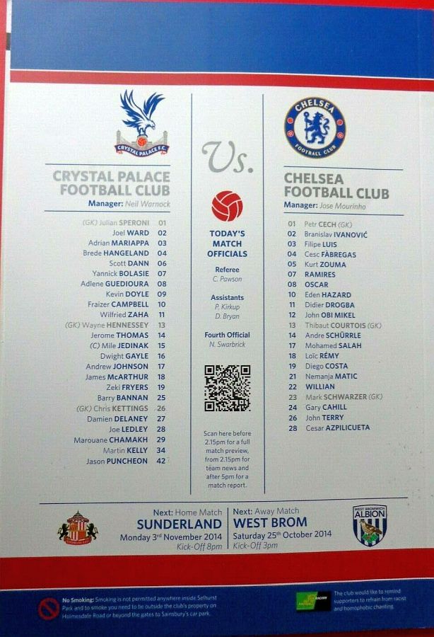 Julian Speroni, Adrian Mariappa (Martin Kelly 60), Scott Dann, Damien Delaney, Joel Ward, Joe Ledley, James McArthur, Jason Puncheon (Yaya Sanogo 71), Jordon Mutch (Glenn Murray 61), Wilfried Zaha, Yannick Bolasie |