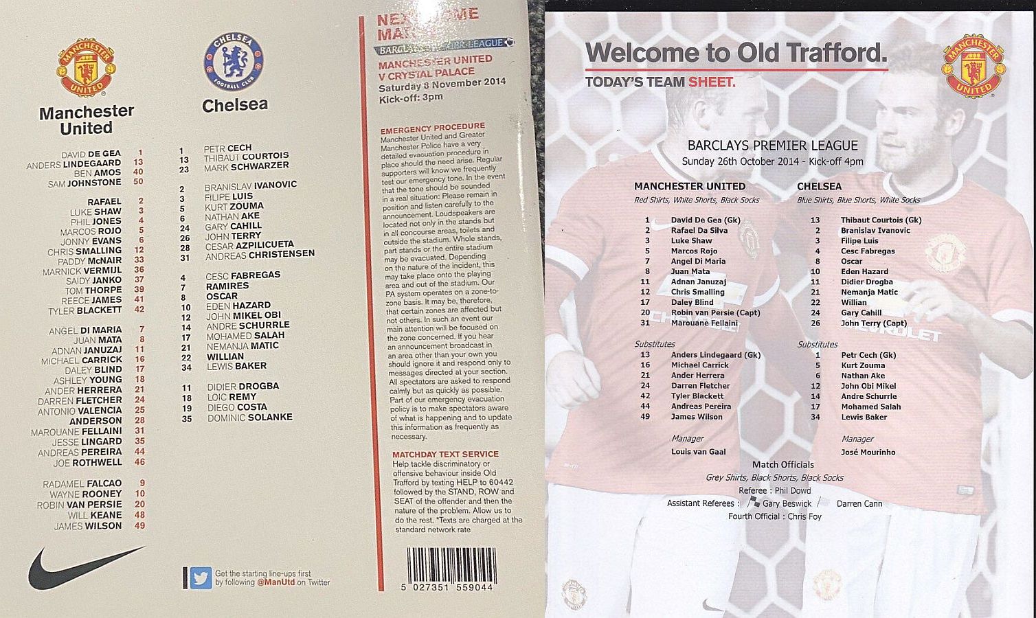 David De Gea, Antonio Valencia, Chris Smalling, Paddy McNair, Luke Shaw (Tyler Blackett 80), Juan Mata (Adnan Januzaj 70), Wayne Rooney, Ander Herrera, Ashley Young (Angel Di Maria 70), Marouane Fellaini, Radamel Falcao |
