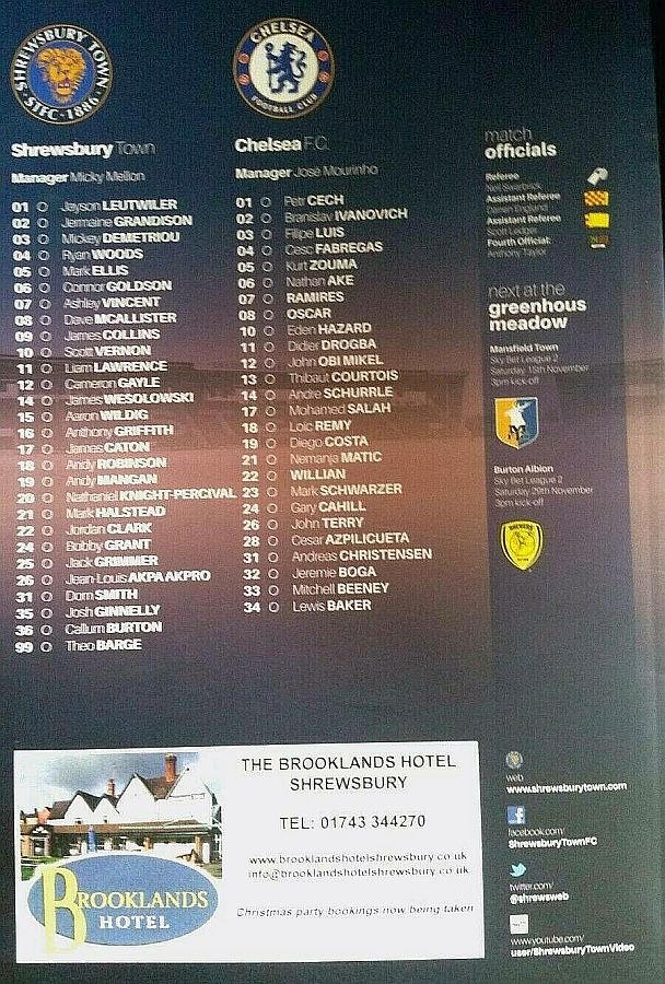 13 Thibaut Courtois, 2 Branislav Ivanovic, 3 Filipe Luis, 4 Cesc Fabregas, 10 Eden Hazard, 18 Loic Remy (37 Isaiah Brown 79), 19 Diego Costa (23 Juan Cuadrado 64), 21 Nemanja Matic, 24 Gary Cahill, 26 John Terry, 36 Ruben Loftus-Cheek ( 6 Nat Ake 73) |
