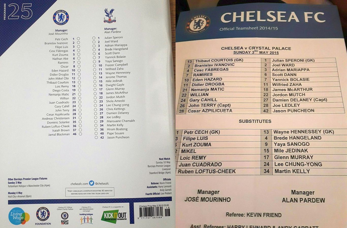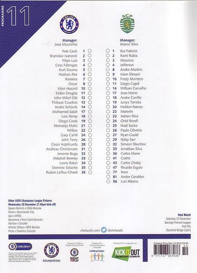 13 Thibaut Courtois, 2 Branislav Ivanovic, 4 Cesc Fabregas ( 5 Kurt Zouma 90), 7 Ramires ( 8 Oscar 56), 10 Eden Hazard, 11 Didier Drogba, 21 Nemanja Matic, 22 Willian (23 Juan Cuadrado 80), 24 Gary Cahill, 26 John Terry, 28 Cesar Azpilicueta |