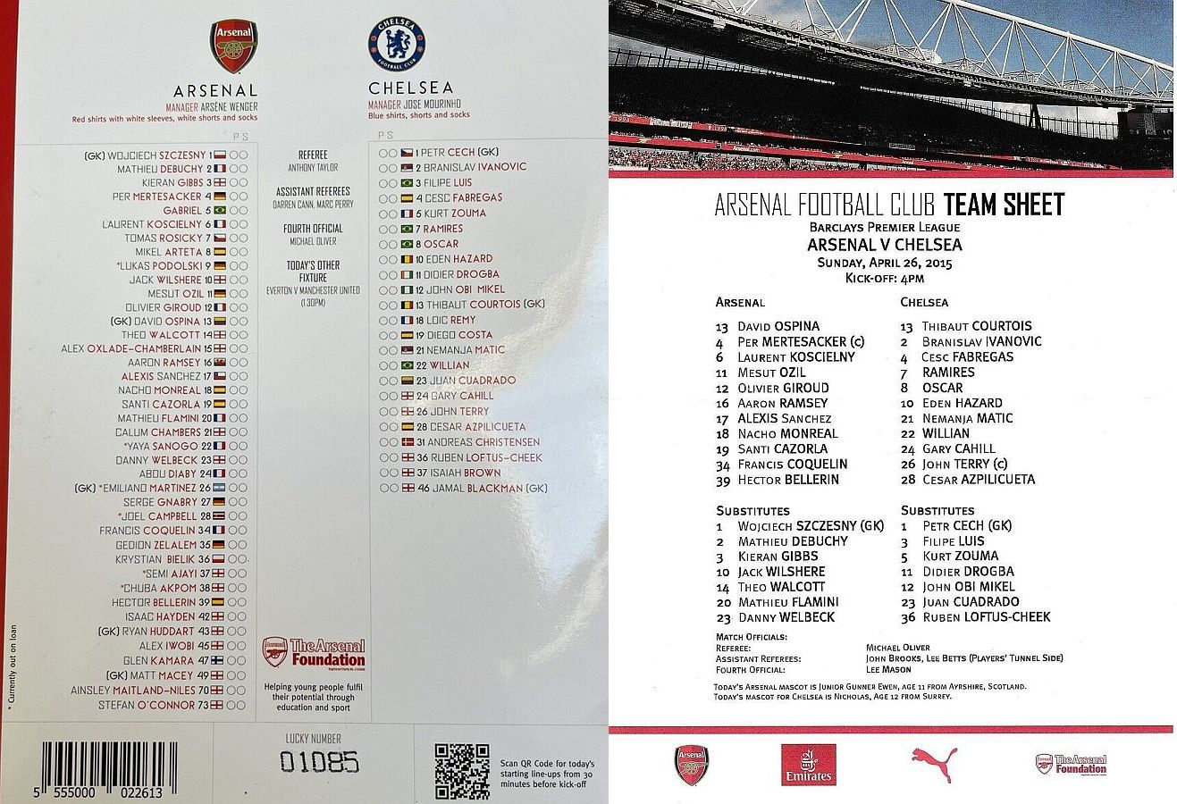 Szczesny, Gibbs, Rosicky, Wilshere, Flamini |
