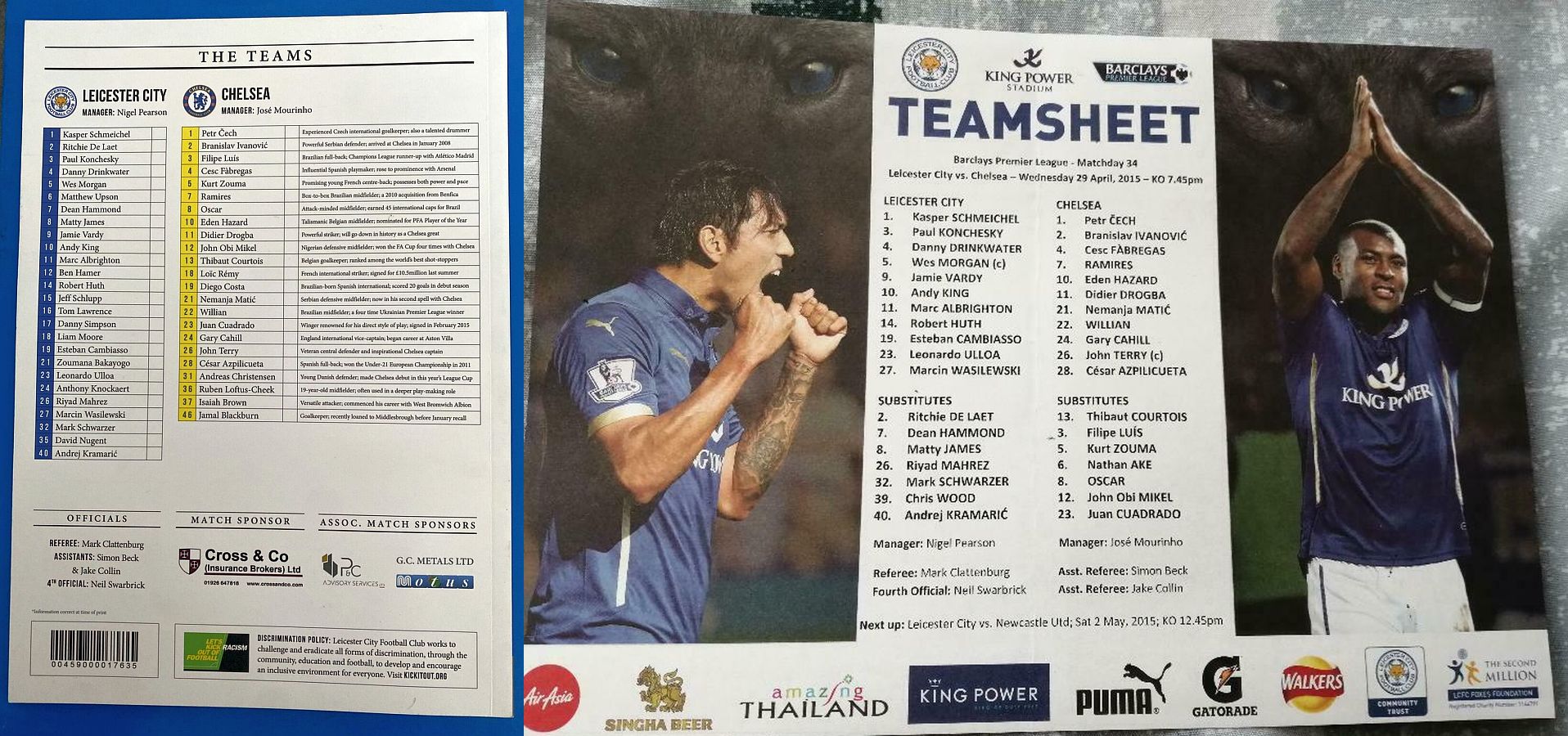 Kasper Schmeichel, Marcin Wasilewski, Robert Huth (Ritchie De Laet 24), Wes Morgan, Marc Albrighton, Andy King (Matty James 18), Esteban Cambiasso, Danny Drinkwater, Paul Konchesky, Jamie Vardy (Riyad Mahrez 77), Leonardo Ulloa |