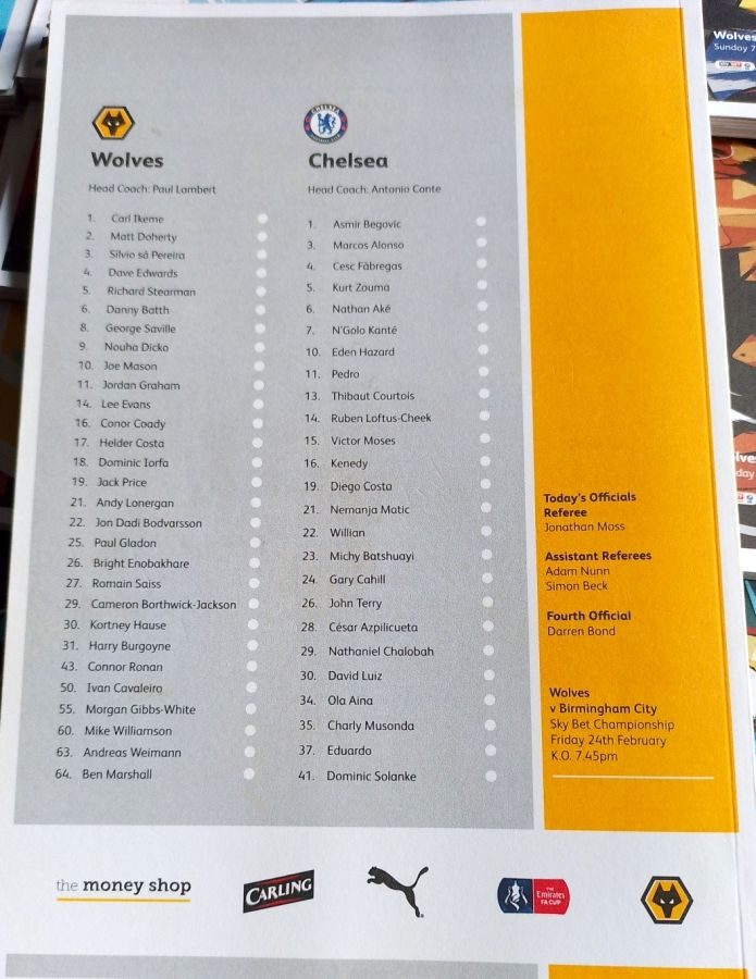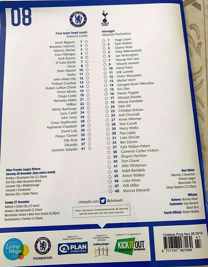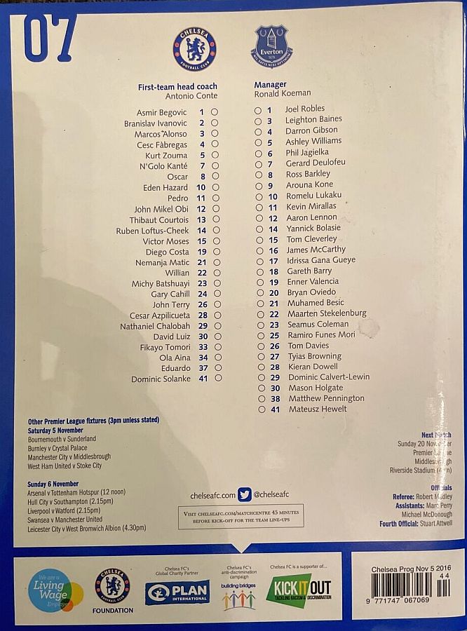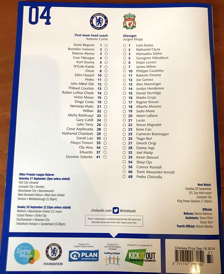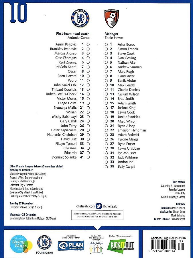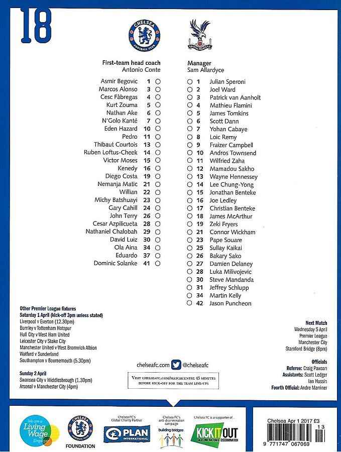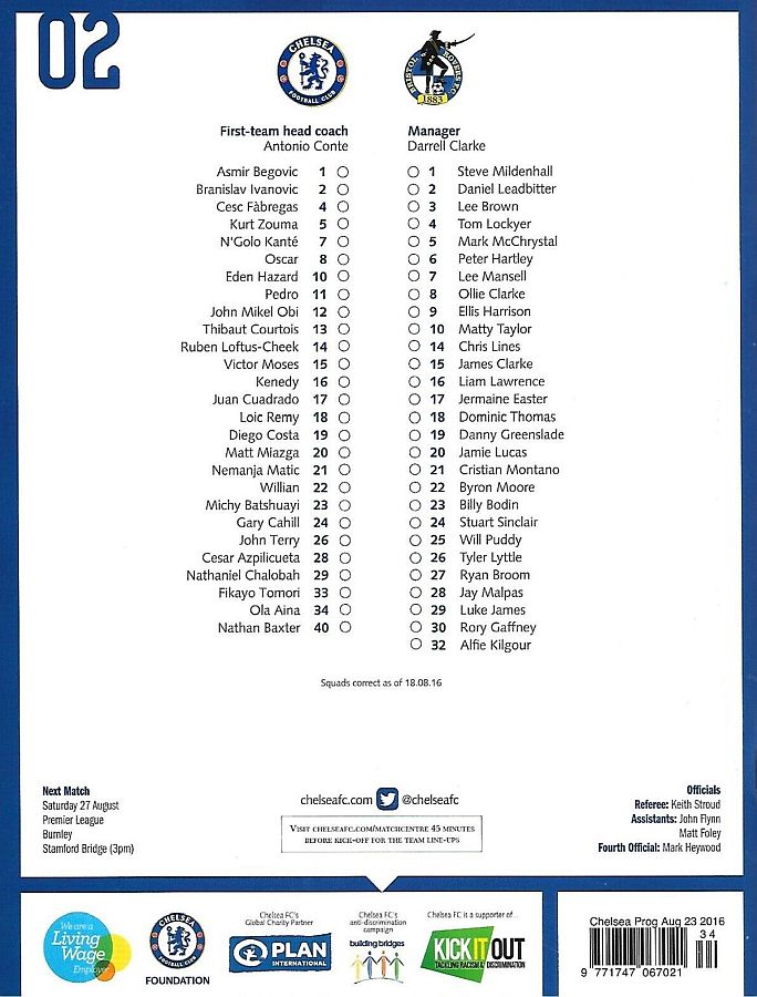 37 Eduardo, 6 Nat Ake, 23 Michy Batshuayi, 26 John Terry |