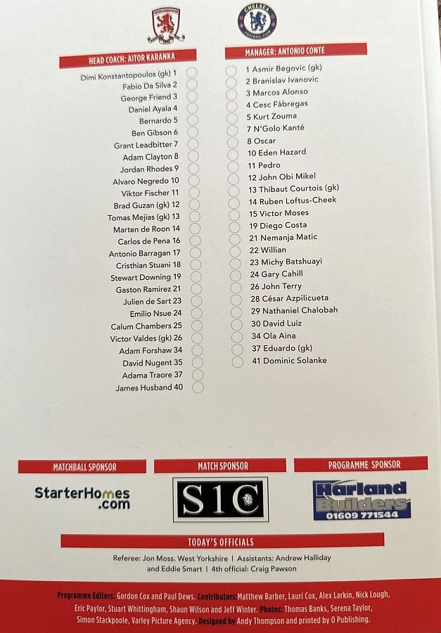 Brad Guzan, Fabio Da Silva, Calum Chambers, Ben Gibson, George Friend, Marten de Roon, Adam Clayton, Adam Forshaw (Grant Leadbitter 57), Adama Traore (Patrick Bamford 58), Alvaro Negredo (Rudy Gestede 83), Stewart Downing |