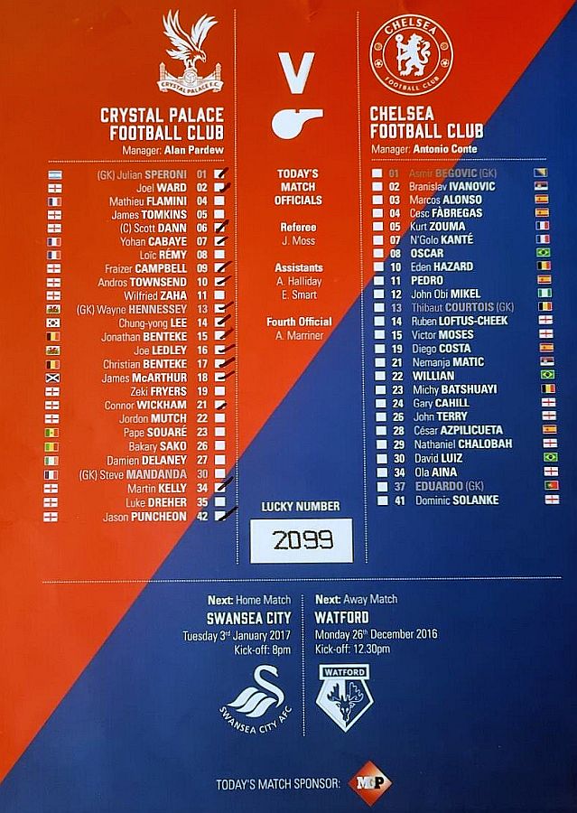 Willian 5, Willian 43 (Pen), Hazard 75, Matic 80 |