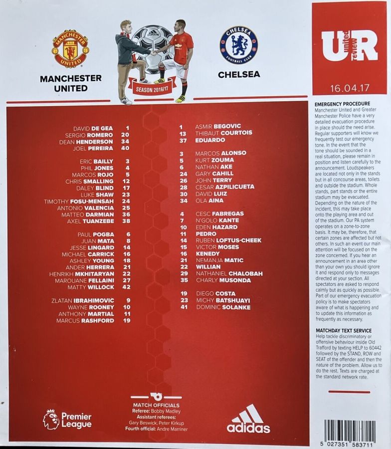 Ander Herrera 73, Marcos Rojo 75, Zlatan Ibrahimovic 90 |
