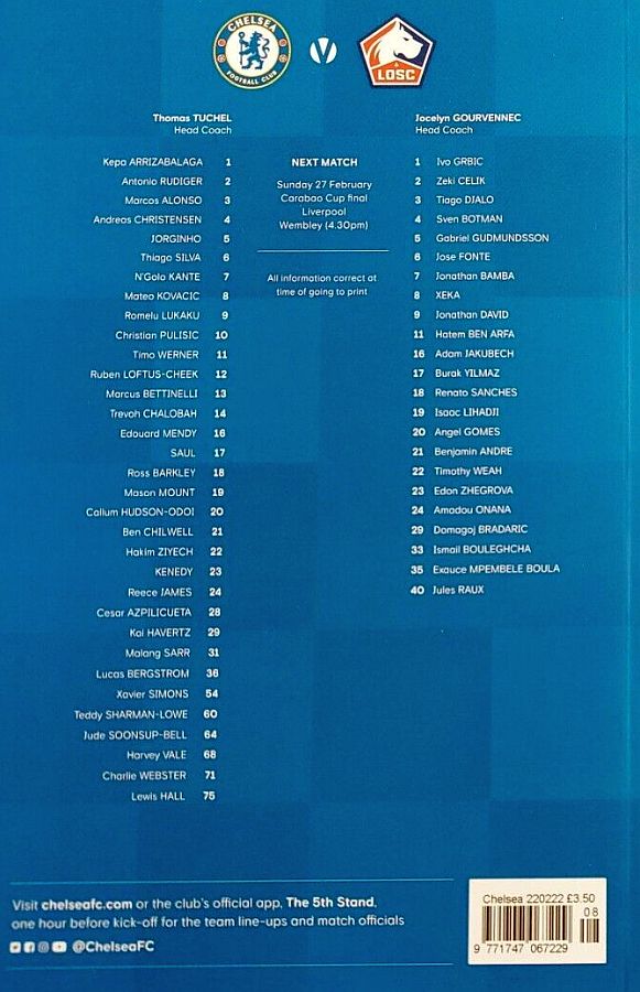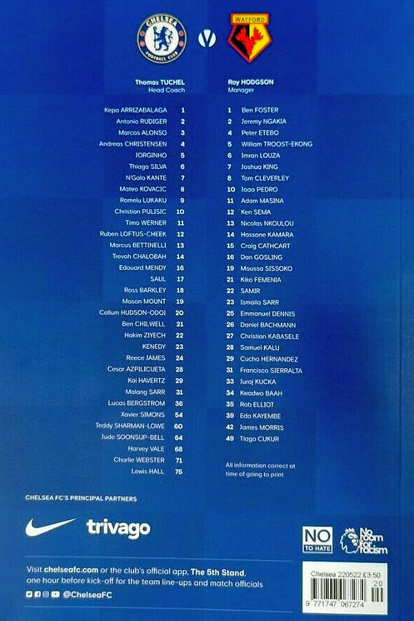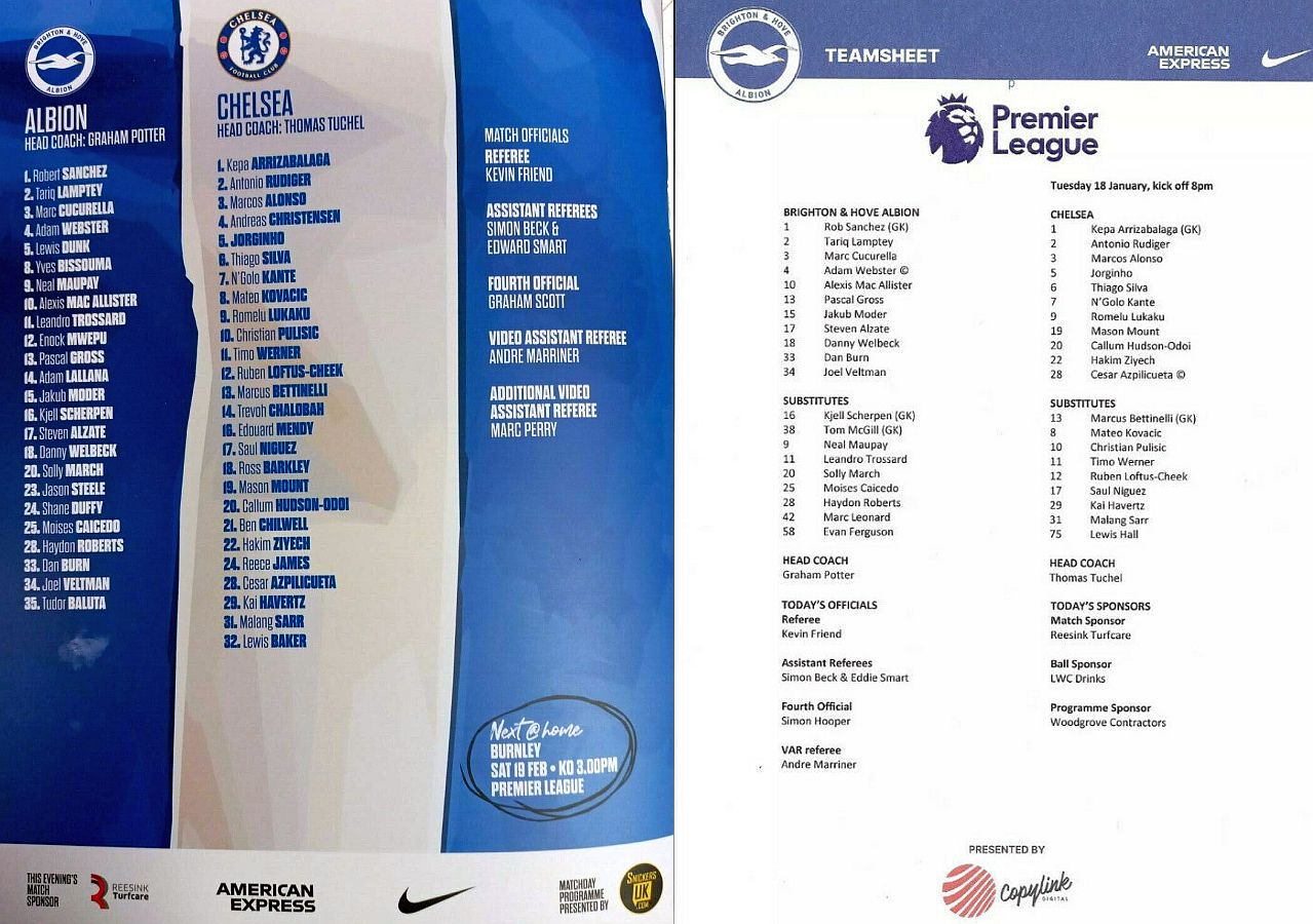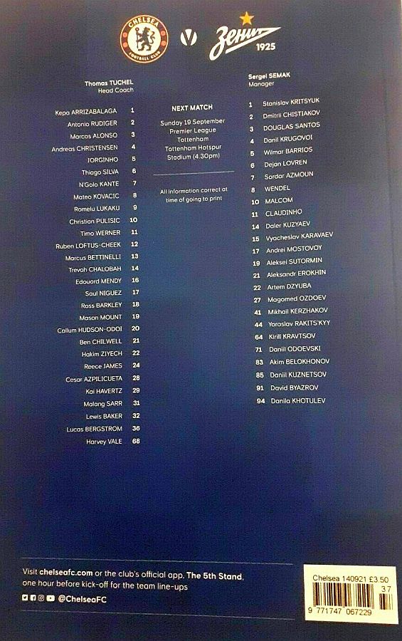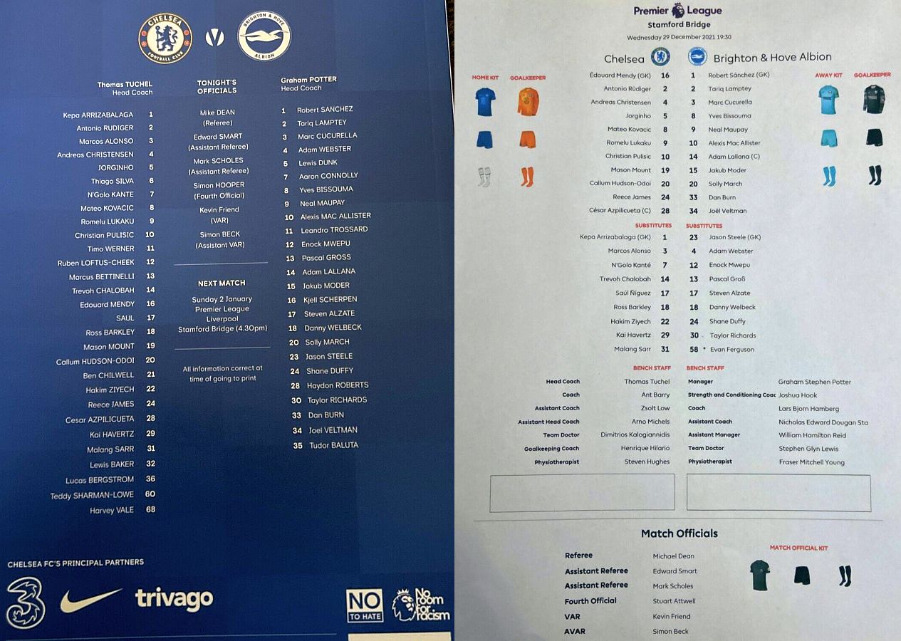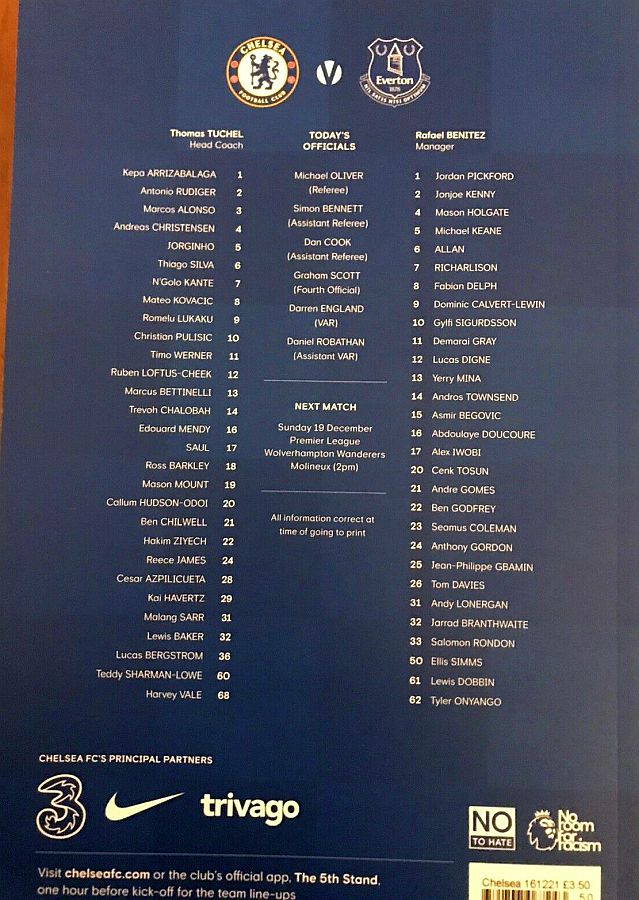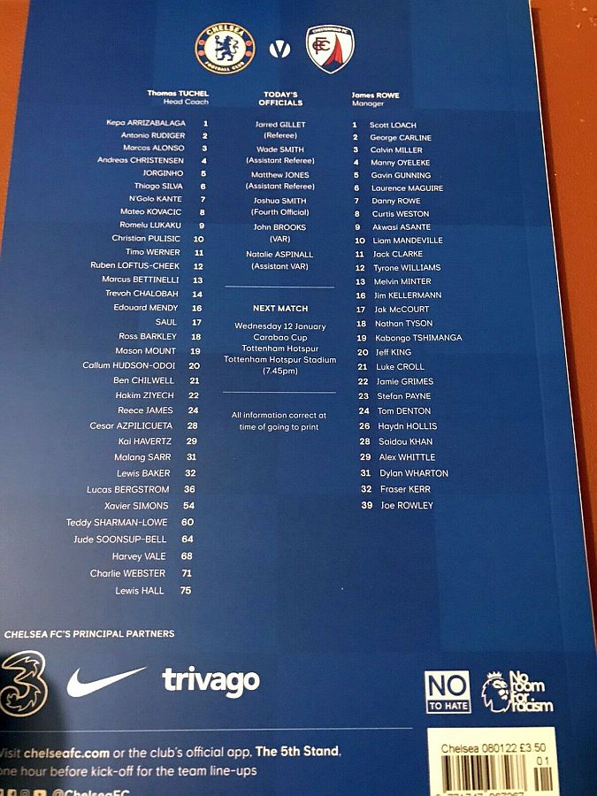 1 Kepa, 11 Timo Werner, 12 Ruben Loftus-Cheek, 20 Callum Hudson-Odoi, 21 Ben Chilwell, 22 Hakim Ziyech |