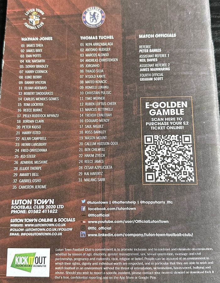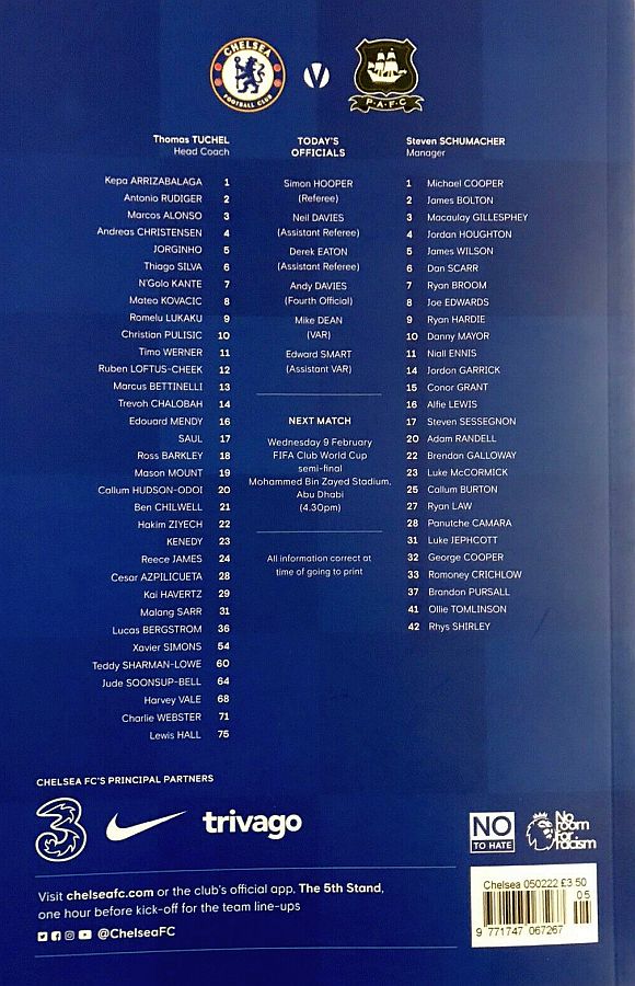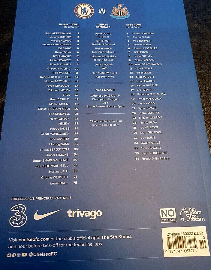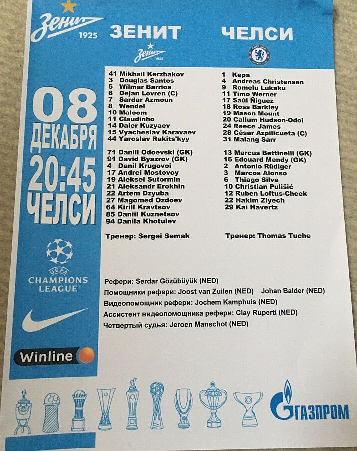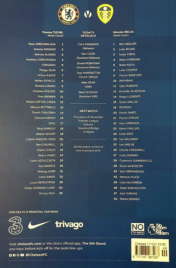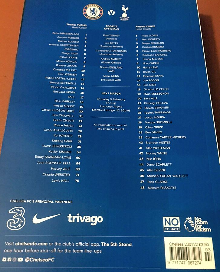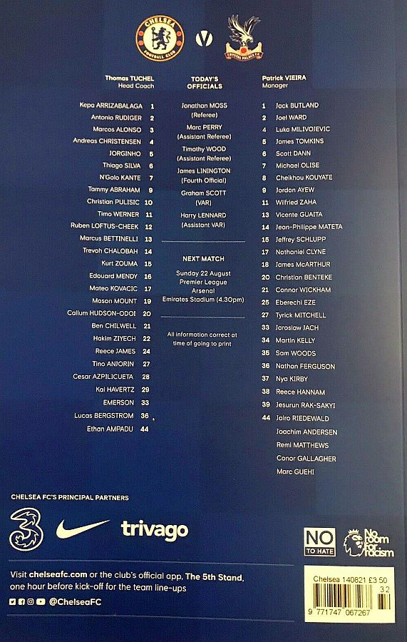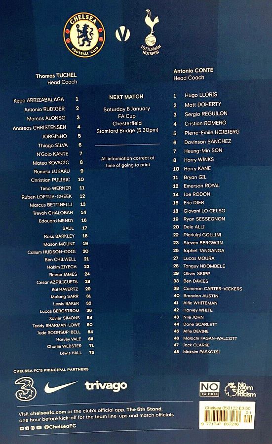 1 Kepa, 11 Timo Werner, 12 Ruben Loftus-Cheek, 20 Callum Hudson-Odoi, 21 Ben Chilwell, 22 Hakim Ziyech |