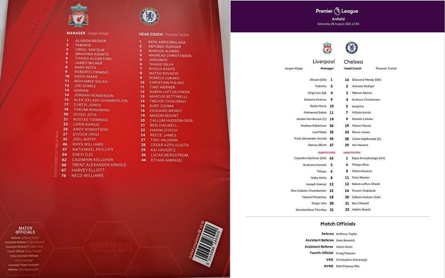 Alisson Becker, Trent Alexander-Arnold, Joel Matip, Virgil Van Dijk, Andy Robertson (Kostas Tsimikas 86), Jordan Henderson (Thiago 74), Fabinho, Harvey Elliott, Sadio Mane, Roberto Firmino (Diogo Jota 42), Mohamed Salah |