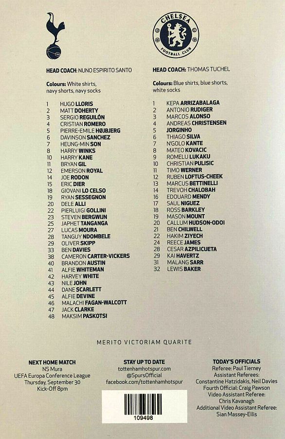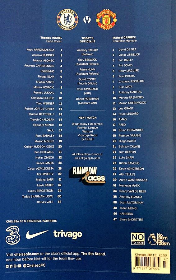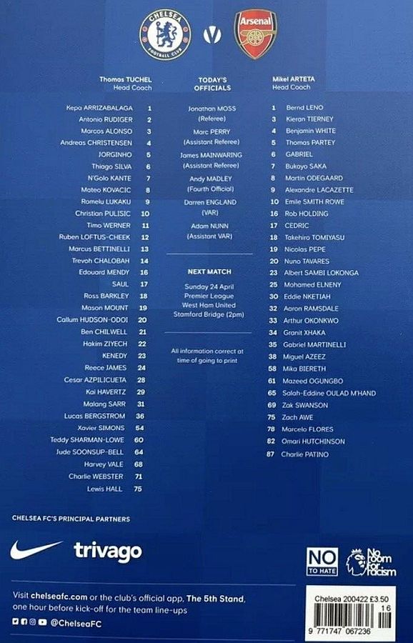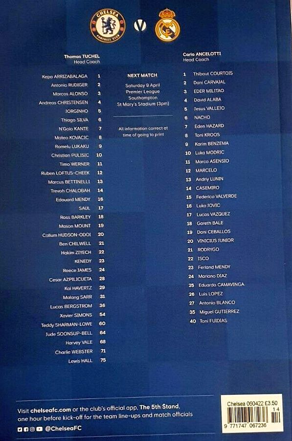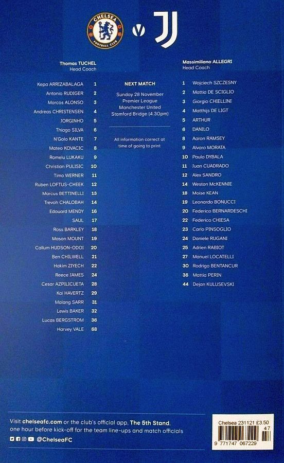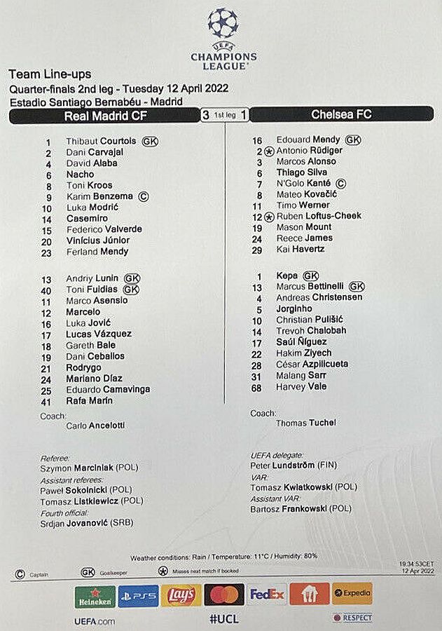 1 Kepa, 11 Timo Werner, 17 Saul Niguez, 31 Malang Sarr |