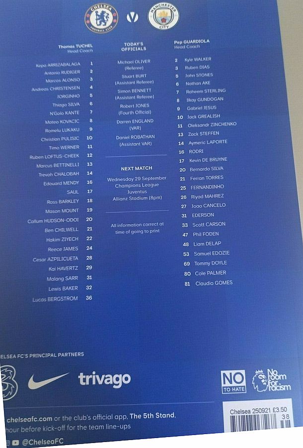 16 Edouard Mendy, 2 Antonio Rudiger, 3 Marcos Alonso, 4 Andreas Christensen, 5 Jorginho (14 Trevoh Chalobah 87), 7 N'Golo Kante ( 8 Mateo Kovacic 46), 9 Romelu Lukaku, 19 Mason Mount, 24 Reece James, 28 Cesar Azpilicueta, 29 Kai Havertz ( 6 Thiago Silva 46) |