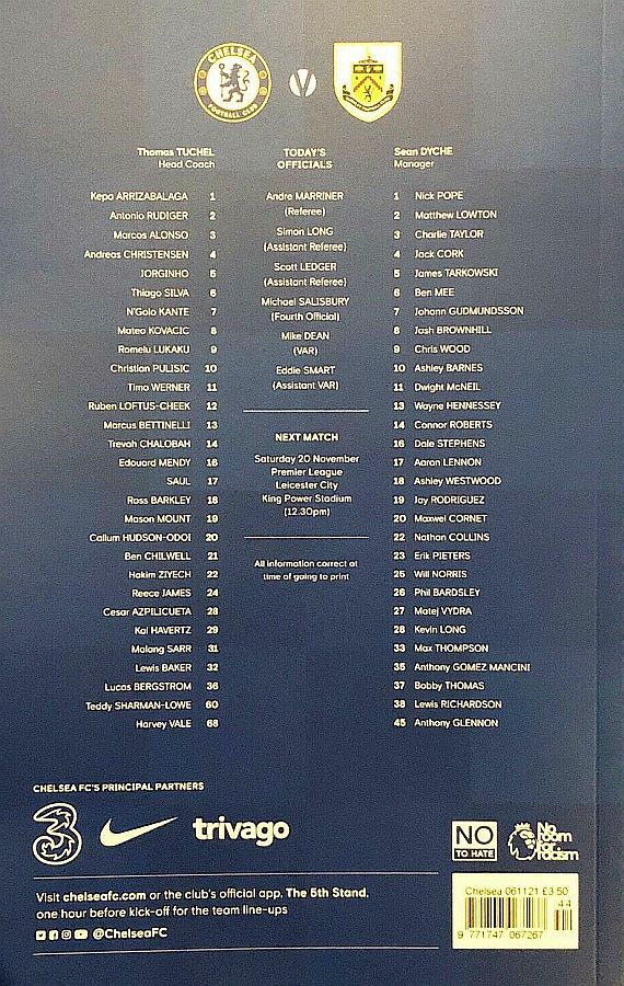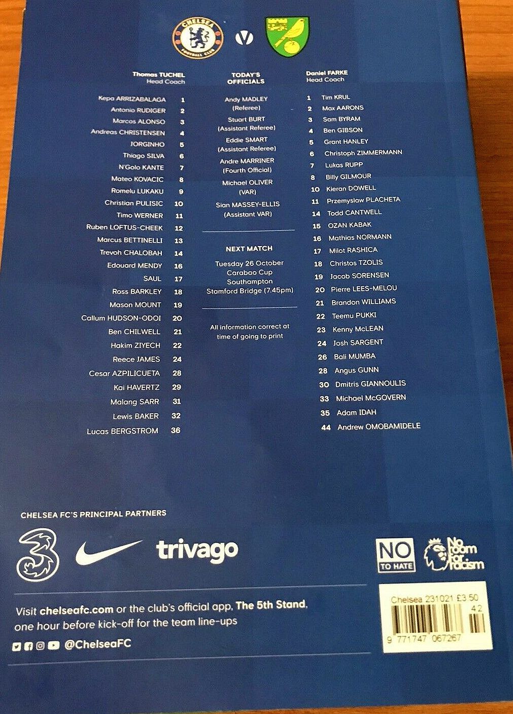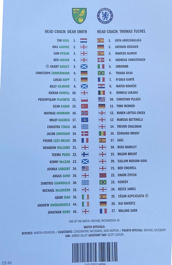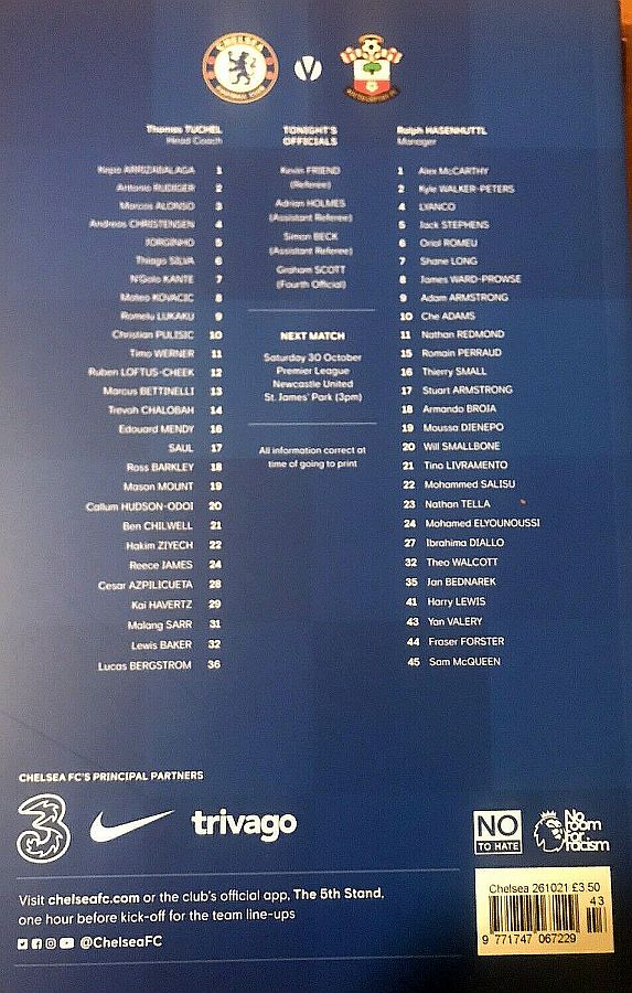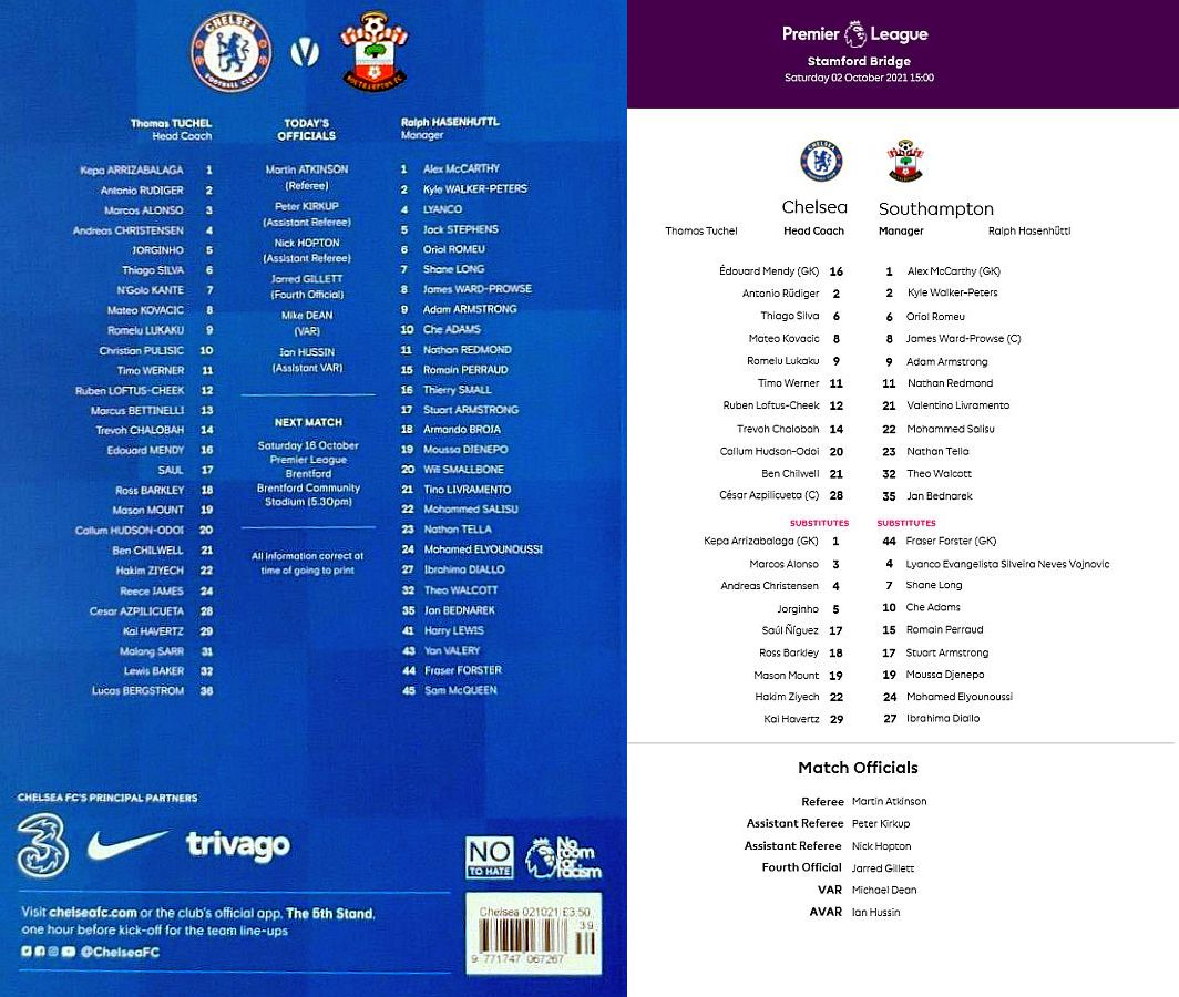 16 Edouard Mendy, 2 Antonio Rudiger (18 Ross Barkley 65), 6 Thiago Silva, 7 N'Golo Kante, 17 Saul Niguez, 19 Mason Mount (21 Ben Chilwell 89), 22 Hakim Ziyech, 23 Kenedy (31 Malang Sarr 59), 24 Reece James, 28 Cesar Azpilicueta, 29 Kai Havertz |