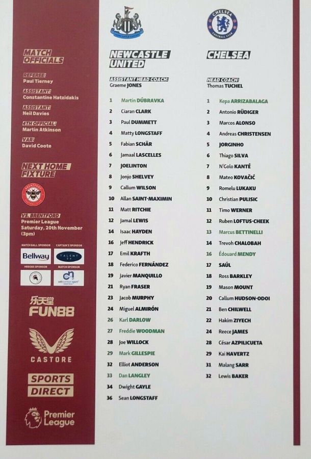 1 Kepa, 17 Saul Niguez, 18 Ross Barkley, 19 Mason Mount, 23 Kenedy, 31 Malang Sarr |