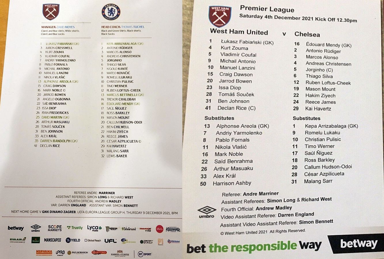 Lukasz Fabianski, Vladimir Coufal, Craig Dawson, Aaron Cresswell, Ben Johnson, Thomas Soucek, Mark Noble (Declan Rice 62), Arthur Masuaku, Pablo Fornals, Andriy Yarmolenko (Jarrod Bowen 72), Said Benrahma (Manuel Lanzini 78) |