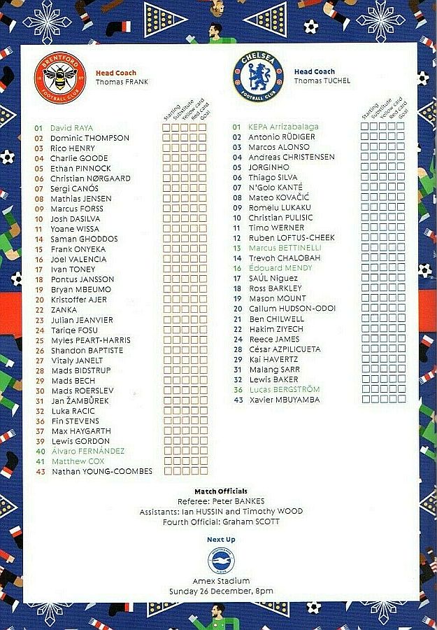 1 Kepa, 6 Thiago Silva, 11 Timo Werner, 18 Ross Barkley, 29 Kai Havertz, 31 Malang Sarr |