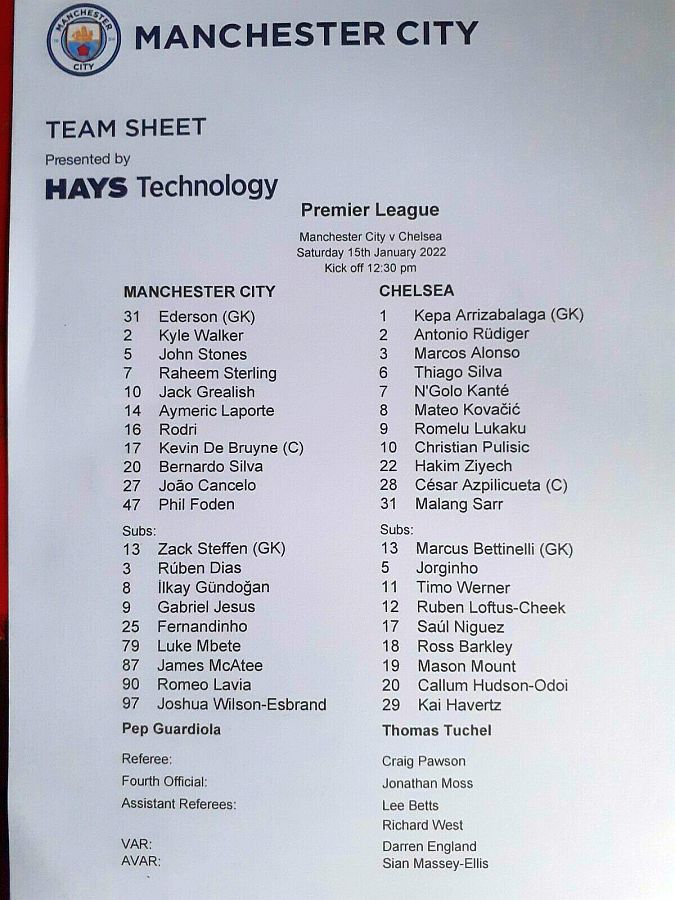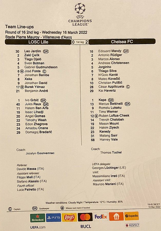Sarr 65, Mount 84, Azpilicueta 90 |