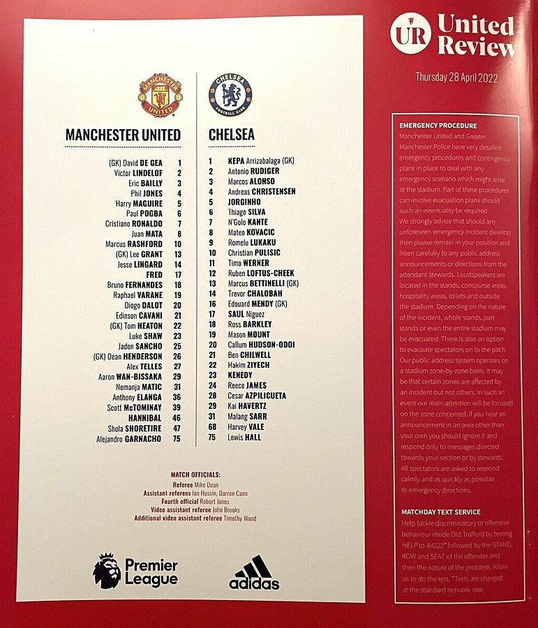 David De Gea, Diogo Dalot, Victor Lindelof, Raphael Varane, Alex Telles, Nemanja Matic (Phil Jones 79), Scott McTominay, Marcus Rashford (Juan Mata 79), Bruno Fernandes, Anthony Elanga (Alejandro Garnacho 90), Cristiano Ronaldo |