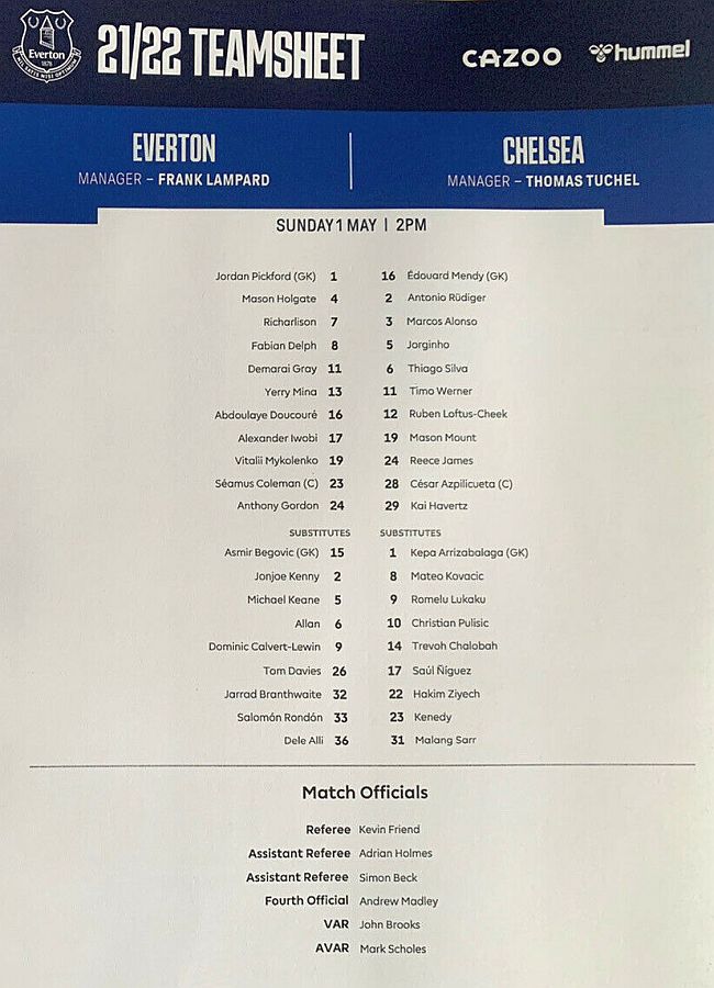 Begovic, Kenny, Keane, Calvert-Lewin, Davies, Branthwaite |