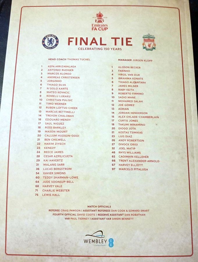 16 Edouard Mendy, 2 Antonio Rudiger, 3 Marcos Alonso, 5 Jorginho, 6 Thiago Silva, 8 Mateo Kovacic ( 7 N'Golo Kante 66), 9 Romelu Lukaku (22 Hakim Ziyech 85), 10 Christian Pulisic (12 Ruben Loftus-Cheek 105 (18 Ross Barkley 119)), 14 Trevoh Chalobah (28 Cesar Azpilicueta 105), 19 Mason Mount, 24 Reece James |