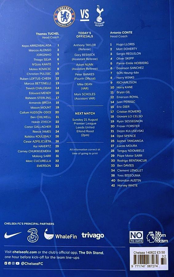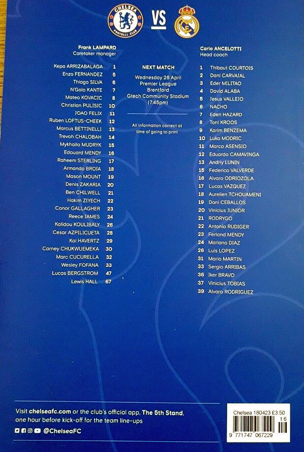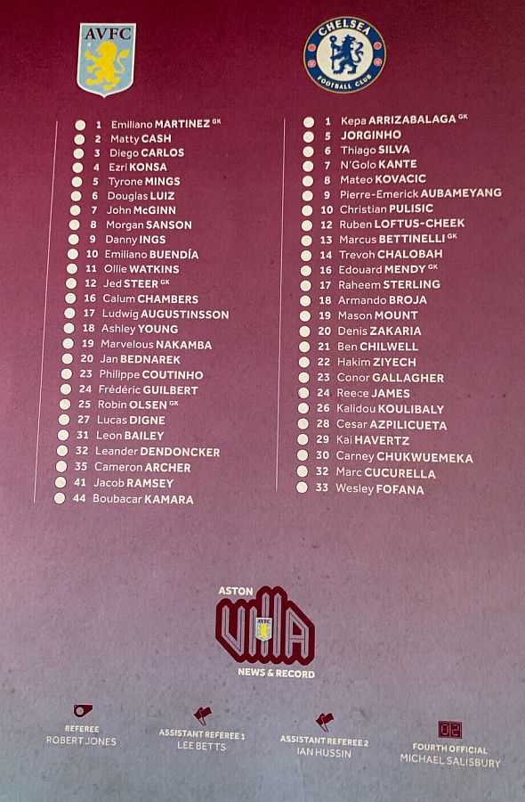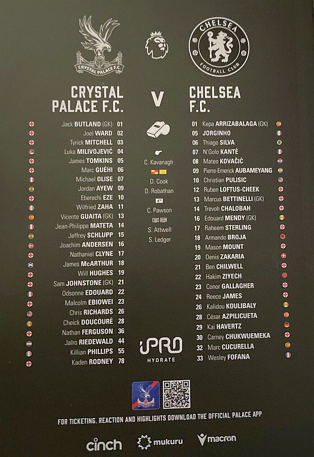 16 Edouard Mendy, 6 Thiago Silva, 8 Mateo Kovacic (29 Kai Havertz 72), 10 Christian Pulisic (19 Mason Mount 60), 12 Ruben Loftus-Cheek ( 5 Jorginho 83), 17 Raheem Sterling, 23 Conor Gallagher (18 Armando Broja 60), 24 Reece James, 26 Kalidou Koulibaly, 32 Marc Cucurella (21 Ben Chilwell 71), 33 Wesley Fofana |