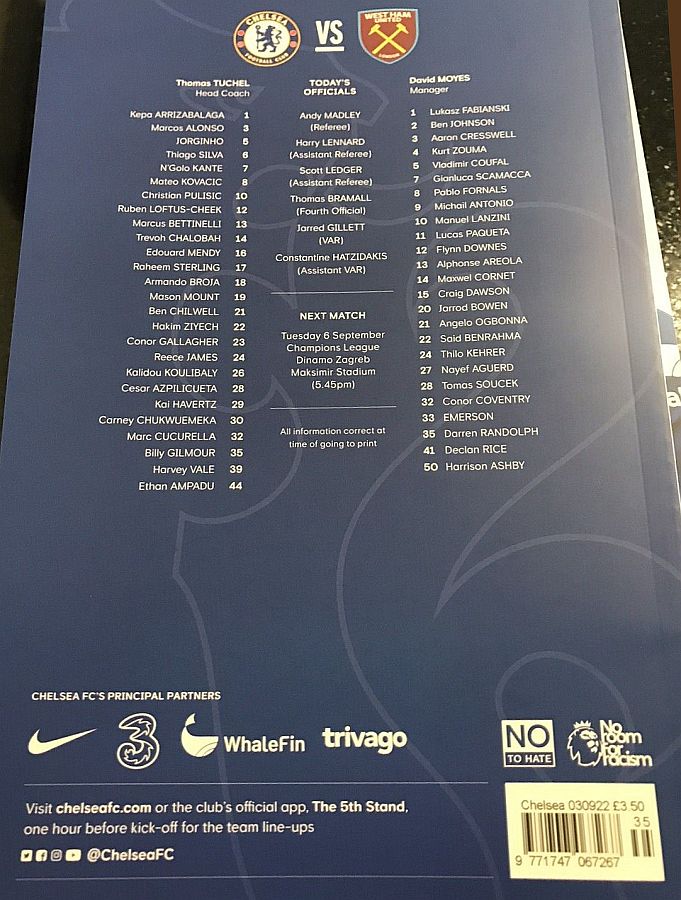 16 Edouard Mendy, 8 Mateo Kovacic, 10 Christian Pulisic, 67 Lewis Hall |