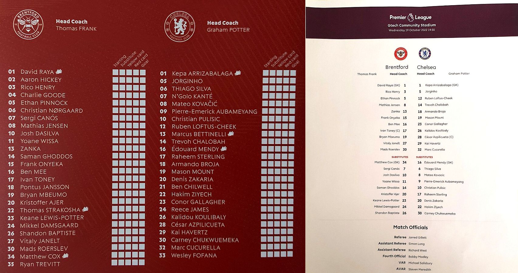 Cesar Azpilicueta 37 (O.G), Bryan Mbeumo 78 |
