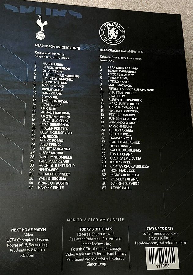Hugo Lloris, Cristian Romero, Eric Dier, Ben Davies, Emerson Royal (Lucas Moura 82), Pierre-Emile Hojbjerg, Rodrigo Bentancur (Yves Bissouma 79), Ryan Sessegnon (Richarlison 57), Dejan Kulusevski, Harry Kane, Heung-min Son (Ivan Perisic 79) |