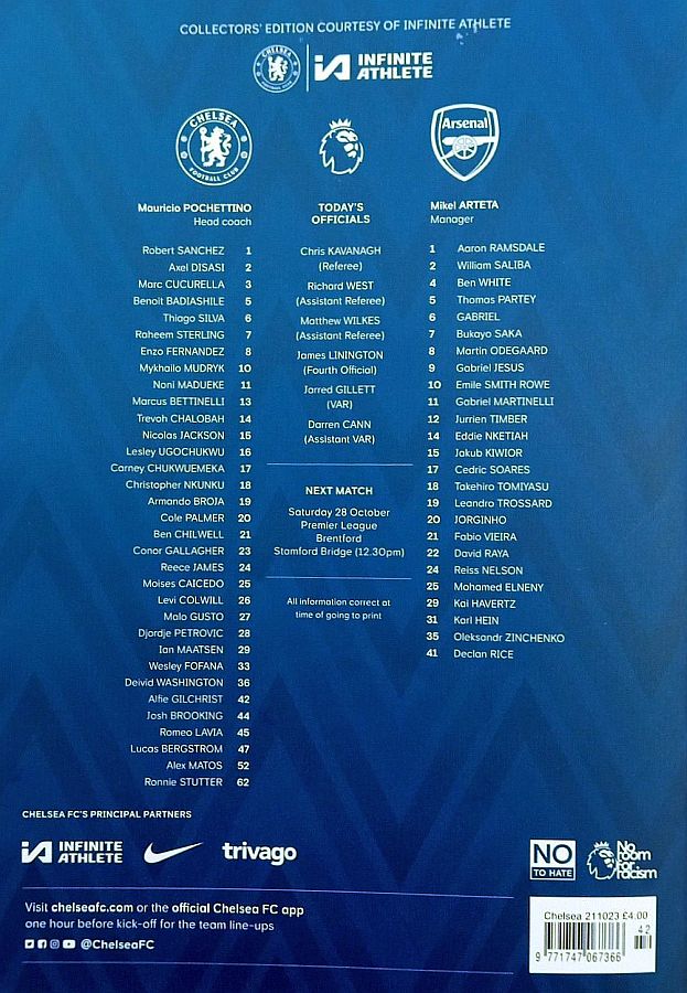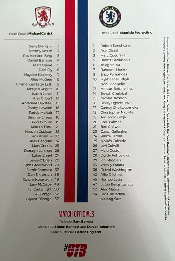 13 Marcus Bettinelli, 2 Axel Disasi, 17 Carney Chukwuemeka, 26 Levi Colwill, 42 Alfie Gilchrist |