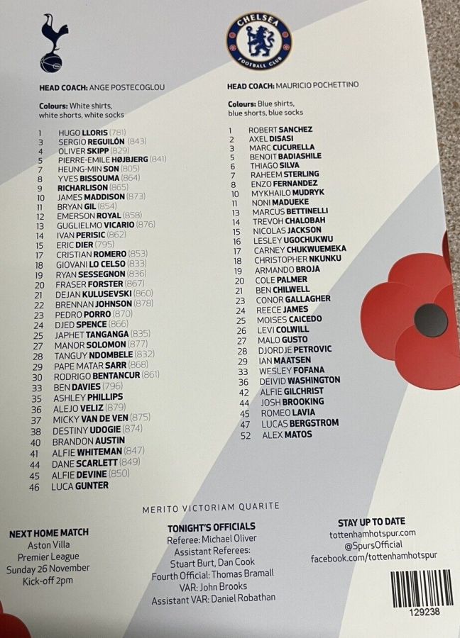 Guglielmo Vicario, Pedro Porro, Cristian Romero, Micky van de Ven, Emerson Royal (Giovani Lo Celso 86), Yves Bissouma (Pierre-Emile Hojbjerg 63), Pape Matar Sarr (James Maddison 63), Dejan Kulusevski, Heung-min Son, Brennan Johnson (Bryan Gil 78), Richarlison (Rodrigo Bentancur 63) |