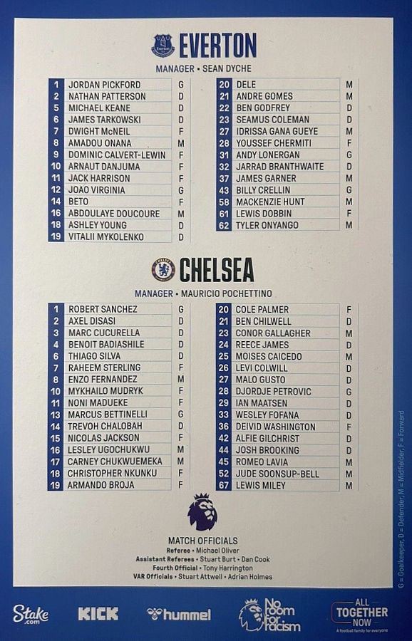 Jordan Pickford, Seamus Coleman (Nathan Patterson 46) (Ben Godfrey 90), James Tarkowski, Jarrad Branthwaite (Michael Keane 57), Vitaliy Mykolenko, Ashley Young, James Garner (Jack Harrison 46), Amadou Onana (Andre Gomes 46), Dwight McNeil, Beto, Abdoulaye Doucoure |