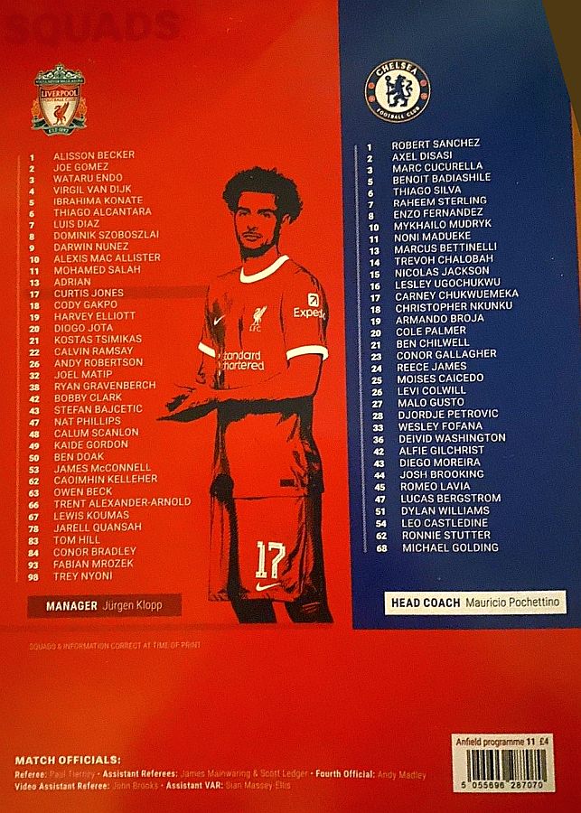 Alisson Becker, Trent Alexander-Arnold, Ibrahima Konate, Virgil Van Dijk, Andy Robertson, Alexis Mac Allister, Dominik Szoboszlai, Mohamed Salah (Harvey Elliott 77), Cody Gakpo (Curtis Jones 66), Luis Diaz (Ben Doak 77), Diogo Jota (Darwin Nunez 66) |