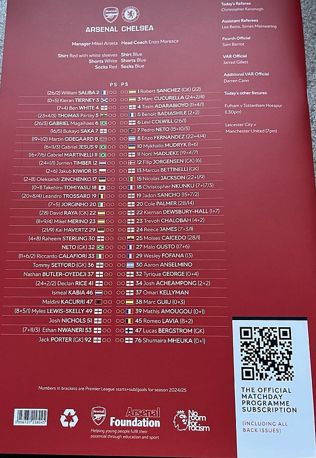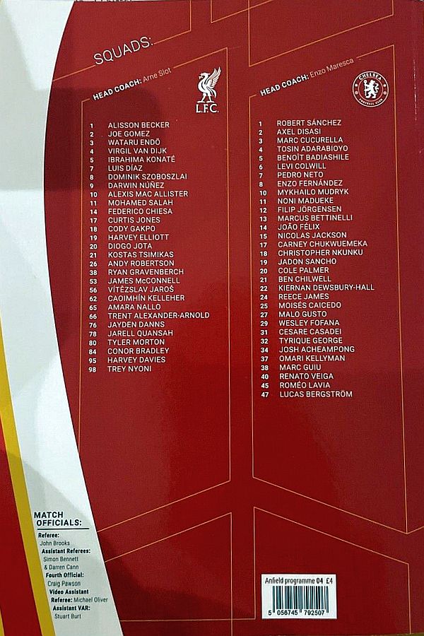 12 Filip Jorgensen, 5 Benoit Badiashile, 17 Andrey Santos, 19 Mamadou Sarr, 22 Kiernan Dewsbury-Hall, 23 Trevoh Chalobah, 30 Aaron Anselmino, 34 Josh Acheampong, 38 Marc Guiu |