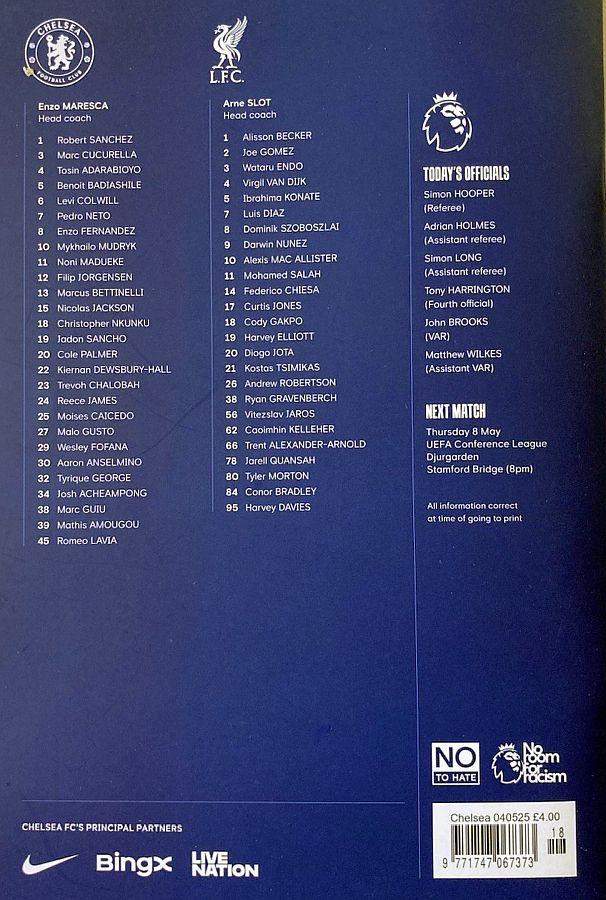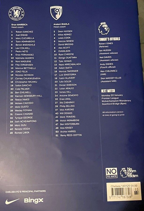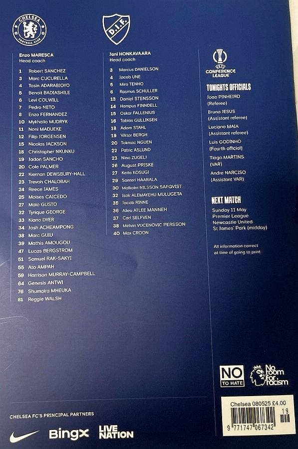 Neto 34, Caicedo 36, Gusto 40, Colwill 82 |