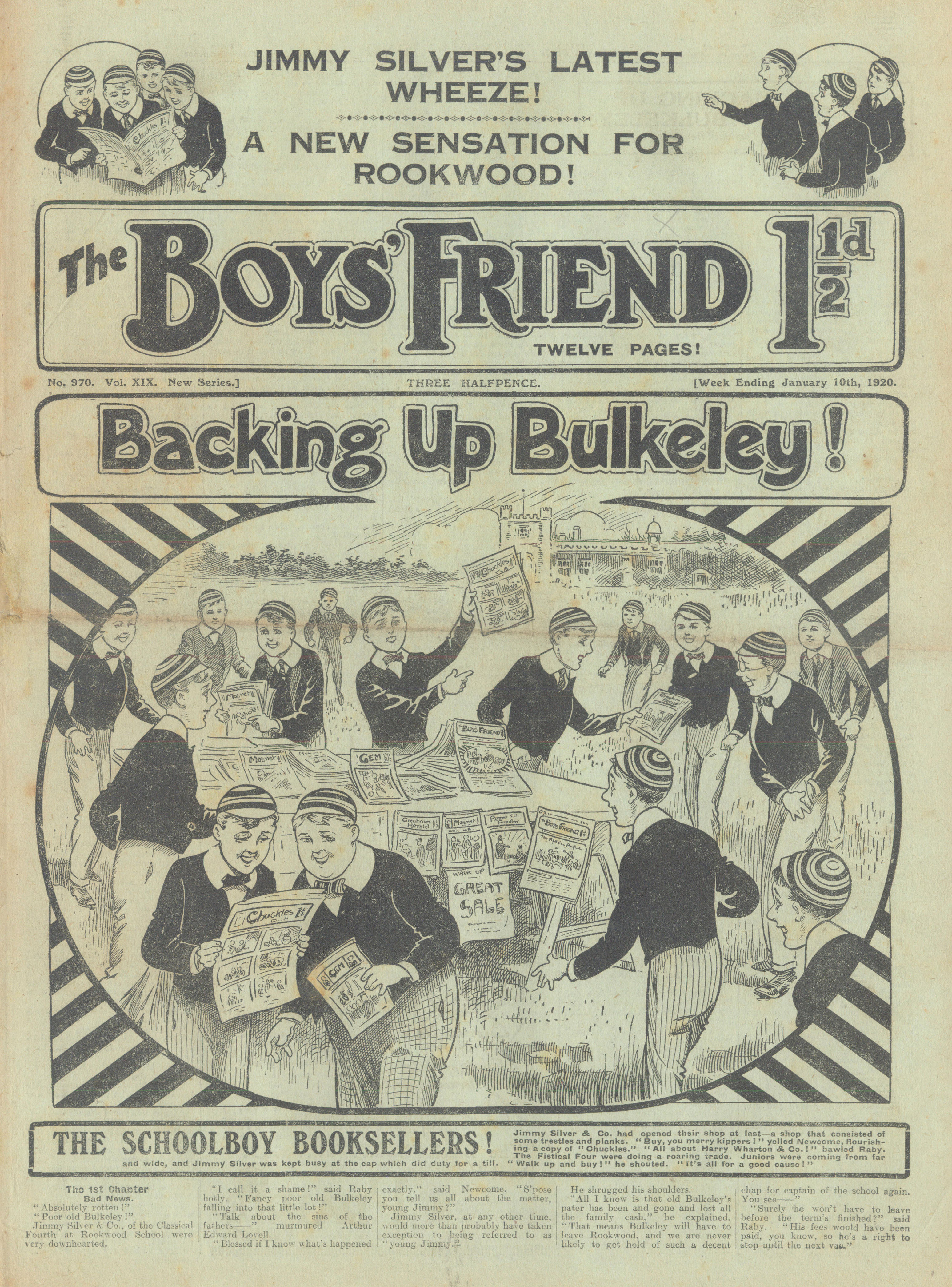 The Boys' Friend The Boys Friend (second Series) ran from 15th June 1901 until 31st Dec 1927. In early 1915 the 'Green 'Un' passed to the Editorship of H. A. Hinton and the Boys' Friend joined the Magnet, Gem, Chuckles and the Penny Popular as one of the Companion Papers. Readers of the other Companion papers were were urged to buy the next Issue to 'read the adventures of a fine new Schoolboy character' - Jimmy Silver of Rookwood'. Rookwood was a success and on the 18th August 1917 (Issue 2/845) a second Hamilton school appeared. The stories of Cedar Creek purported to be of Frank Richard's schooldays in Canada as told by his good friend Martin Clifford. The Editorial of Issue 2/928 is of some interest as it mentions the death of Lewis R. Higgins. According to the Lofts & Adley book 'The men behind Boys' fiction' Lewis R. Higgins is the editor who 'seemed to overflow his editorial chair' mentioned in Frank Richards autobiography as the inspiration behind Billy Bunter's girth. Rookwood ran for 11 years and Cedar Creek for four years before Hamilton parted company with the Boys' Friend on 24th April 1926. Why Hamilton stopped writing for the Boys' Friend is unclear but the paper was never the same and within a year of Rookwood's departure the Green 'un was no more. The following list is based on information kindly shared by Gary P and Alan S. Issues that have been