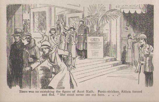 The next morning later, Althea receives a letter from Aunt Kath and is unnerved to read that Aunt Kath had to go urgently to London to see her Lawyer, and that she stayed in Barncombe for the night in cheap lodgings so that she may see Althea. Due to the discomfort she decided not to prolong her stay. But…. she thought she saw her in Barncombe - although Aunt Kath is quick to reassure that it couldn’t POSSIBLY have been Althea. The tone of the letter unsettles Althea and wonders if she could still be found out, and so she doesn’t read the rest of the letter. She almost rebuffs her ‘friends’ who tell her that the planned spree to the Headland Hotel is to be that night. At the same time, the loss of the second re-write is discovered, which horrifies Polly, Betty and Ethel. Deadline time is close and Ethel is worried, although Helen offers to re-write for a third time. Ethel chances to pass Althea in the corridor - who brazenly ignores her, but casts her eyes down in such a guilty way which sets Ethel wondering. The girls are given time off from class to work on the project, and Naomer is glad to find she has been temporarily employed as printer’s devil – she proves a really useful worker – being the errand girl between Morcove and the printers in Barncombe. They are continually interrupted though, due to excessive noise coming from Althea’s study. She is in there with her ‘friends’ discussing the forthcoming evening at the Headland, and how Miss Somerfield ‘fell’ for Lena’s trumped up story of her parents coming to stay at the Headland and that they want her to come for dinner. Althea is by now delighted and her conscience suddenly silent because she has read the rest of Aunt Kath’s letter, where she hears that Aunt Kath is now rich because some dud gold mine shares have suddenly boomed. She is ecstatic because her Aunt promises to ‘really look after her financially’. Althea and her cronies dress exquisitely for the outing to the Headland Hotel, and they sweep past Betty and Polly, ignoring them. (Unknown to Althea, whilst they are en-route to the Headland Hotel, Aunt Kath books into the Hotel for a few days.) Once at the Headland, their despicable behaviour is similar to that they displayed at The Creamery, although worse. It is quickly nipped in the bud when Althea is horrified to see Aunt Kath making her way to the dining room, and once again she panics.