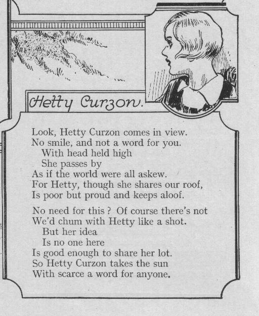Hetty’s Father has passed away, as he was a valued business partner of Josiah Grandways who managed to help build up the Grandways empire from the ashes, Josiah takes in the Curzon family. One does wonder though, how such a fine upstanding man gets involved with Grandways!! Even though Curzon makes Grandways a rich man, Curzon himself dies penniless and things become very bad for the family until Josiah intervenes. One of the better things he has done in his life! Josiah sends Hetty to Morcove, and he also installs Mrs Curzon and Hetty's younger sister Molly in a place ‘somewhere along the Stormwood Road’. Mrs Curzon is unwell and has been since the death of her husband. One also suspects that Hetty was a trial for her Mother long before she came to Morcove Hetty was previously at Burnside School. Josiah had also planned to send Molly to Morcove, but this was dependent upon Hetty getting a good report. Of course this didn’t eventuate, and after the Hetty/Judy affair SO 564–566 Judy Grandways and Dave Lawder, Hetty is cast adrift by the Grandways family. It is not known at the time, if Josiah still aids Mrs Curzon and Molly.