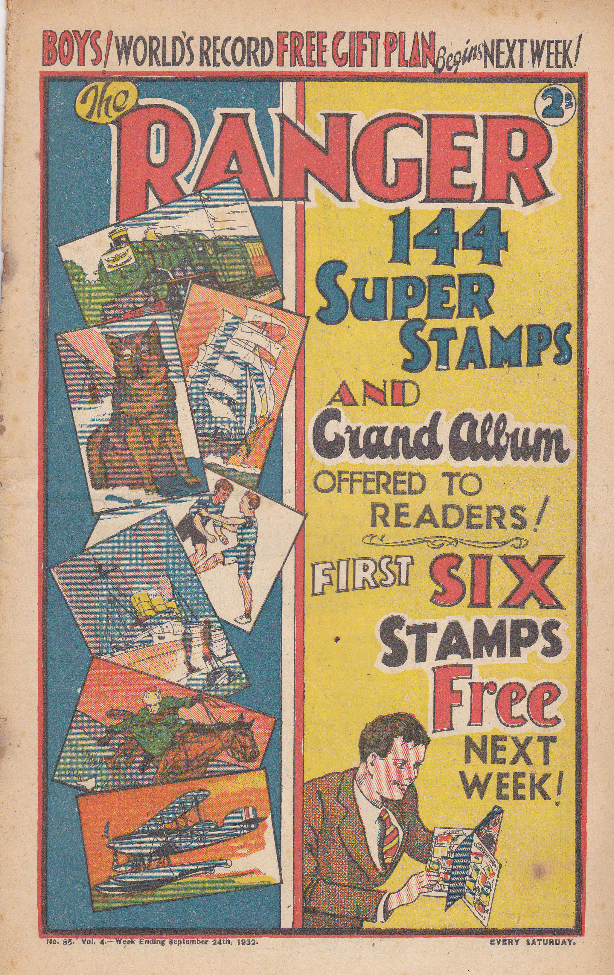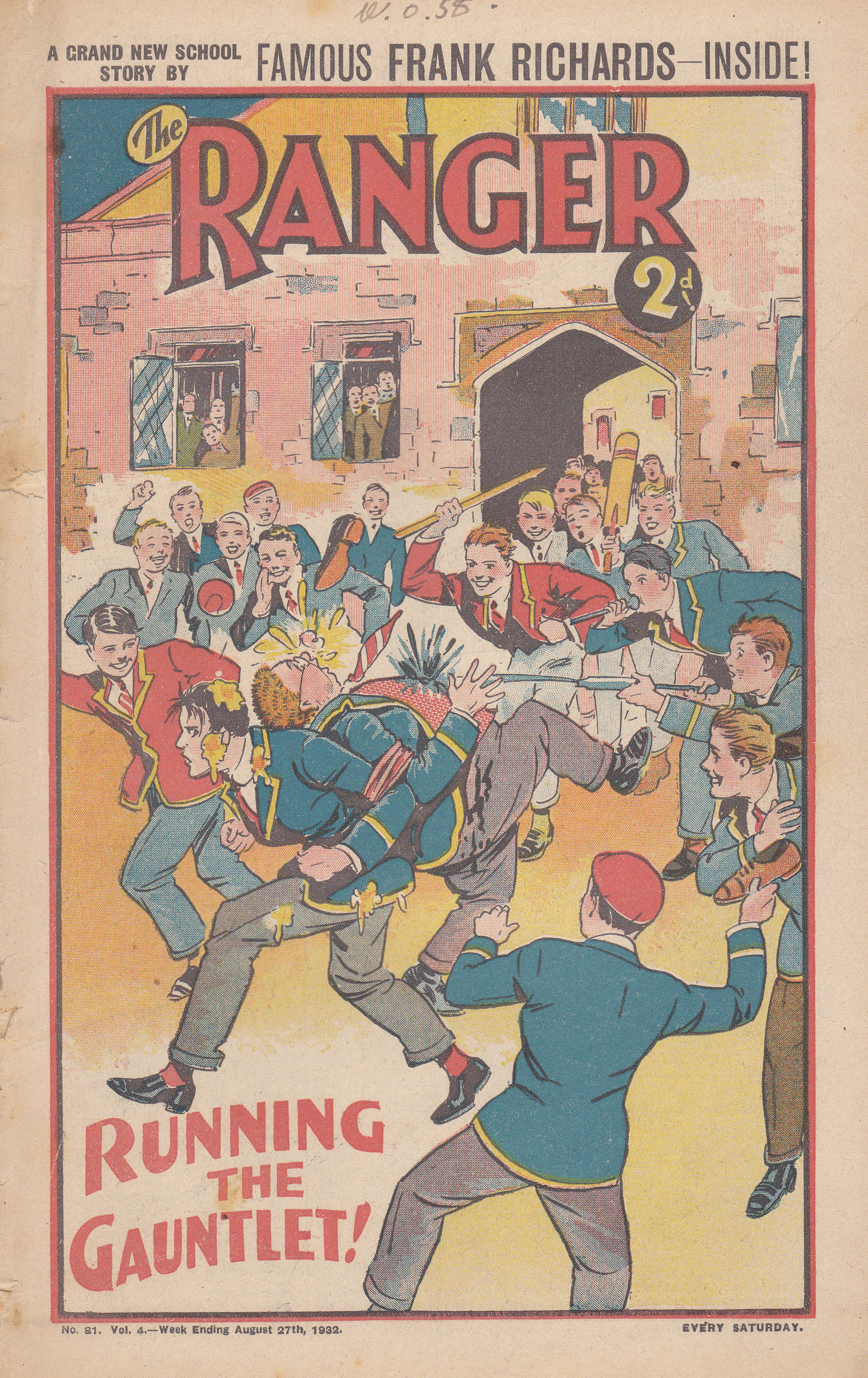 | Grimslade in the Ranger. Series 1 (Issue 80) of the Ranger introduced the Fourth Form at Grimslade. The school was situated on the borders of Lancashire and Yorkshire and the two houses (White's and Redmayes') were intended to echo the war of the Roses. Much of the Grimslade content was reprinted in the Schoolboys Own Library issues 232, 238. 242 & 248. Series 2 (issue 1) saw the return of the boys of Grimslade but this time the action moved to the Pacific. Reminiscent of an earlier Edwy Searles Brooks story the boys of Grimslade and their Master are stranded on a remote island in the Pacific. the 'Cheerio Castaways' lasted for 47 issues, much of the content being reprinted in the Schoolboys Own Library issues 252, 254 & 256. Very little appeared in the CD on Grimslade, all I could find was one of Roger Jenkins 'Do You Remember' articles covering the Schoolboys Own Library issue 232. You can read it here.