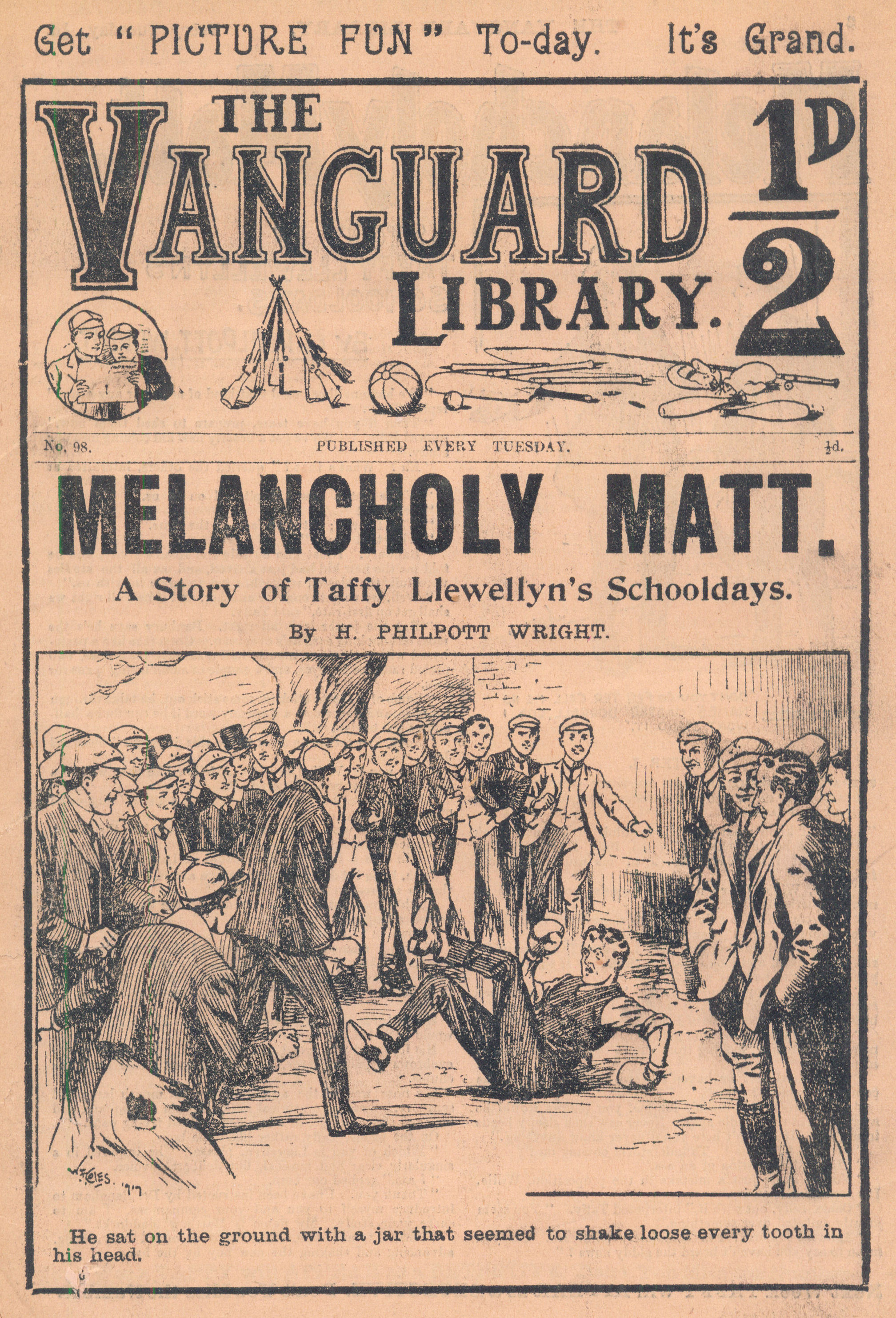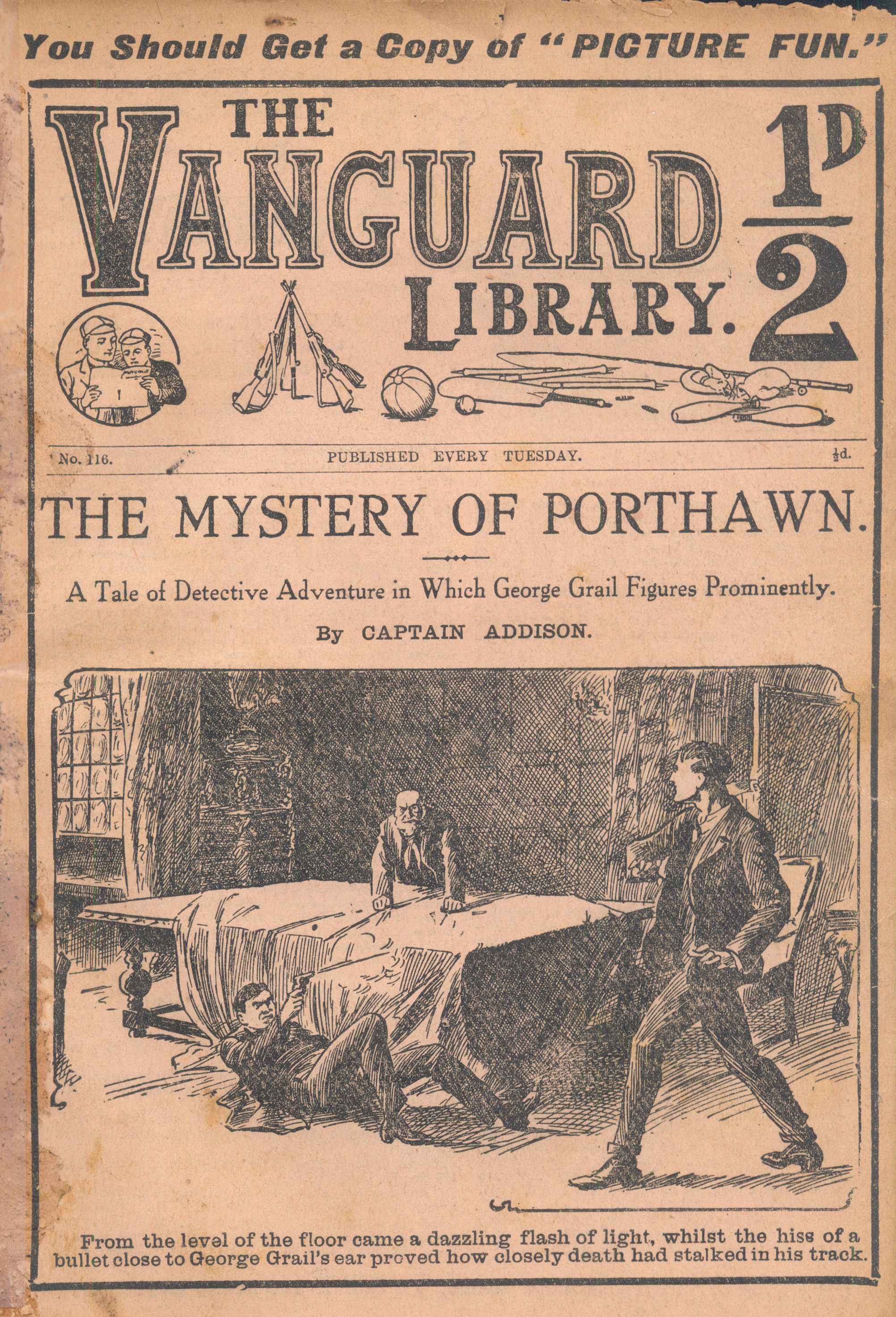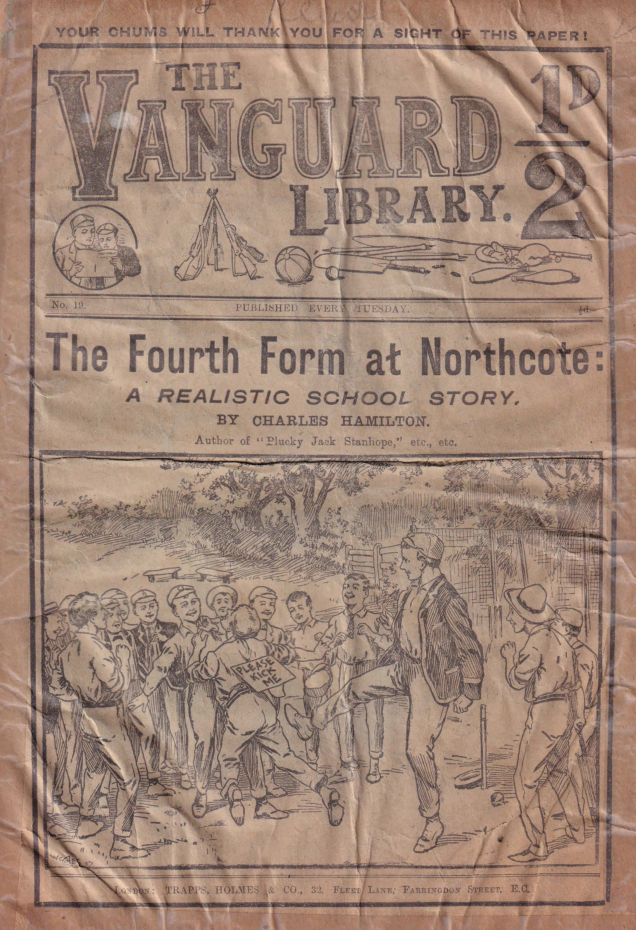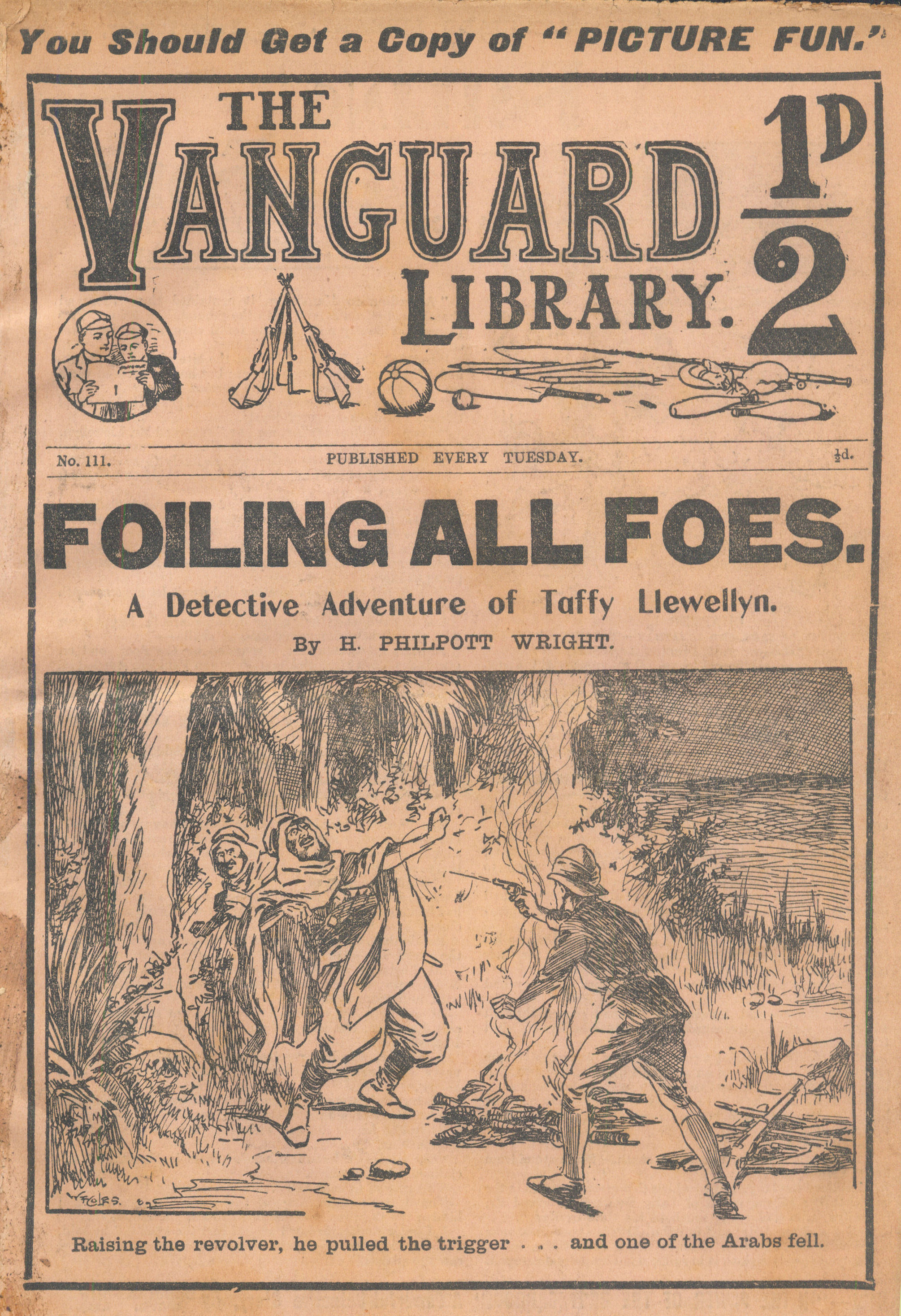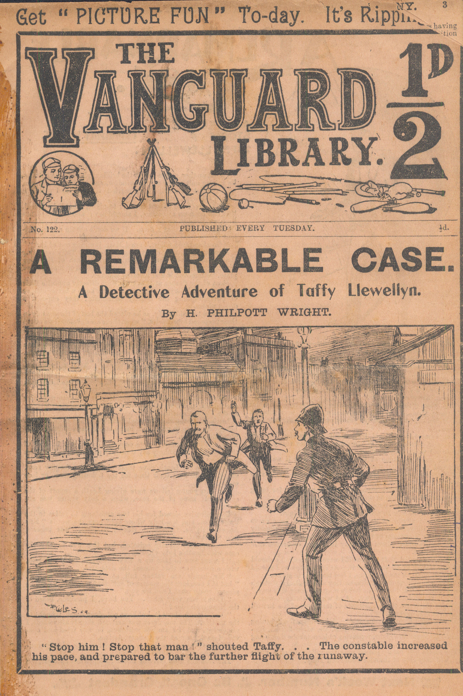 The Vanguard Library was published by Trapps Holmes and ran from May 1907 until April 1910, a total of 152 issues. Issue 137 carried an announcement that the following week the paper would become the Vanguard Library of Football, Sport and Adventure. Issue 138 remains untraced and may not have been published. Issue 139-153 were published in tabloid format. You would have to assume that the new format was not a success as 153 was the final issue. The short lived Old Boys Book Collector carried a couple of interesting articles on the Vanguard Library. In Issue 1 the publication's creator Tom Hopperton wrote an article on the Vanguard Library which managed to annoy Hamilton - Issue 2 contained Hamilton's response! One interesting fact emerged in Hamilton's reply - it was previously thought that only a dozen or so Hamilton stories had appeared in Trapps Holmes publications but in his reply he states that the number was at least a thousand. Allan S and John L have been researching the Trapps Holmes publications and their findings are recorded in the Hamilton Bibliography. Copies of this paper (in fact all Trapps Holmes publications) are very difficult to obtain. The paper doesn't age well and is very brittle so perhaps that is why we don't see many issues coming on to the market today. If anyone can provide more information on this publication (or indeed in any Trapps Holmes publication) please contact me. A few issues of the Vanguard Library are available for download. If you have any issues you would like to share then please contact me. A number of Hamilton stories were reprinted in the Picture Fun The following list was kindly supplied by Dr Nandu Thalange. |