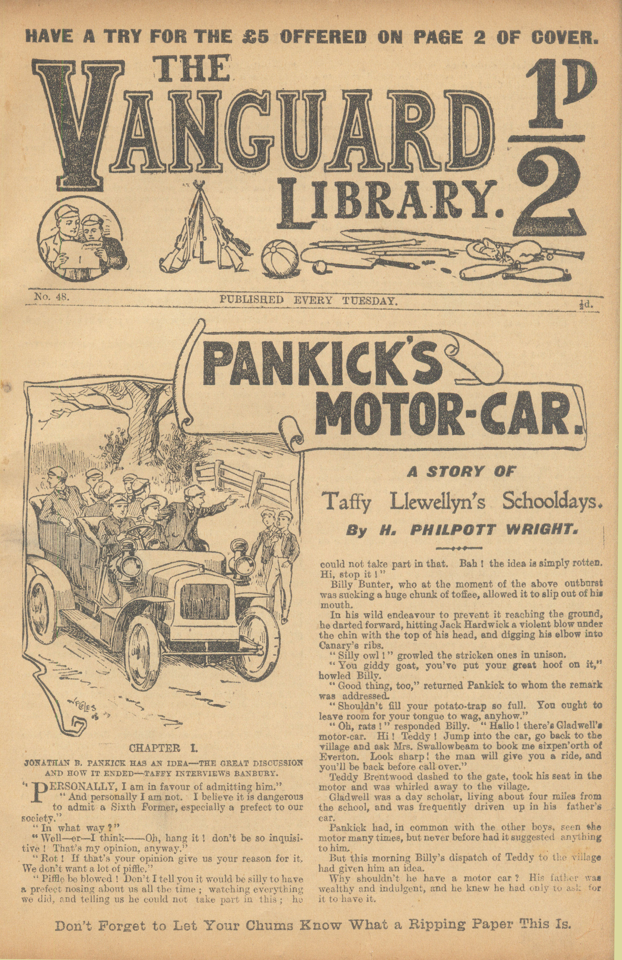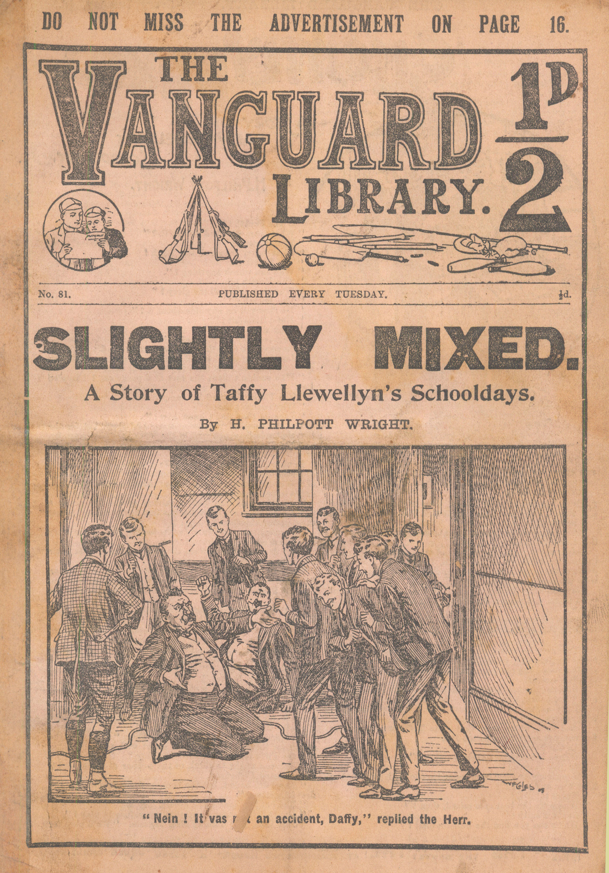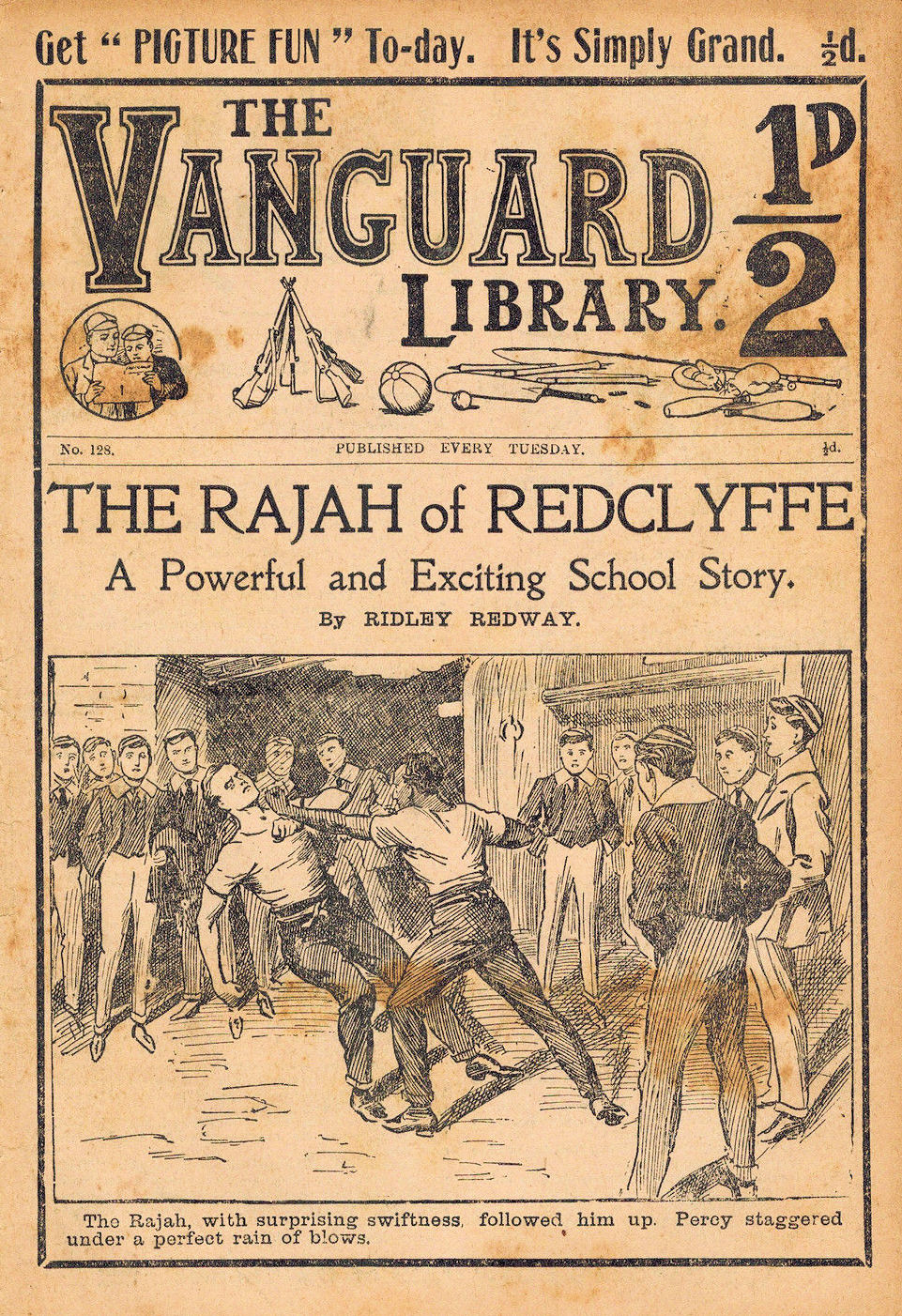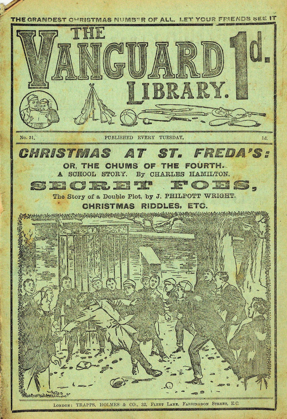 The Vanguard Library was published by Trapps Holmes and ran from May 1907 until April 1910, a total of 152 issues. Issue 137 carried an announcement that the following week the paper would become the Vanguard Library of Football, Sport and Adventure. Issue 138 remains untraced and may not have been published. Issue 139-153 were published in tabloid format. You would have to assume that the new format was not a success as 153 was the final issue. The short lived Old Boys Book Collector carried a couple of interesting articles on the Vanguard Library. In Issue 1 the publication's creator Tom Hopperton wrote an article on the Vanguard Library which managed to annoy Hamilton - Issue 2 contained Hamilton's response! One interesting fact emerged in Hamilton's reply - it was previously thought that only a dozen or so Hamilton stories had appeared in Trapps Holmes publications but in his reply he states that the number was at least a thousand. Allan S and John L have been researching the Trapps Holmes publications and their findings are recorded in the Hamilton Bibliography. Copies of this paper (in fact all Trapps Holmes publications) are very difficult to obtain. The paper doesn't age well and is very brittle so perhaps that is why we don't see many issues coming on to the market today. If anyone can provide more information on this publication (or indeed in any Trapps Holmes publication) please contact me. A few issues of the Vanguard Library are available for download. If you have any issues you would like to share then please contact me. A number of Hamilton stories were reprinted in the Picture Fun The following list was kindly supplied by Dr Nandu Thalange. |